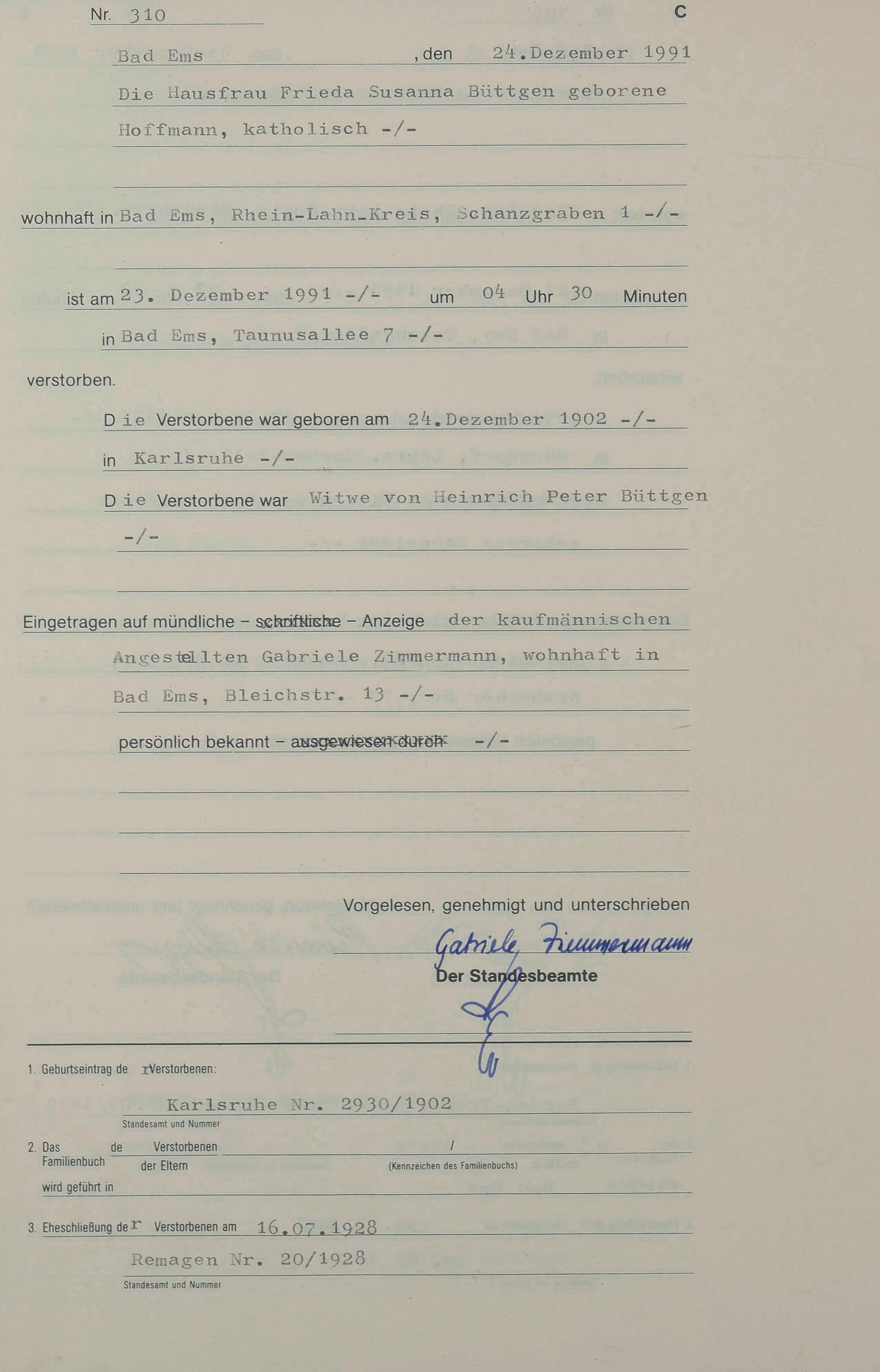 1318: Sterberegister 1991