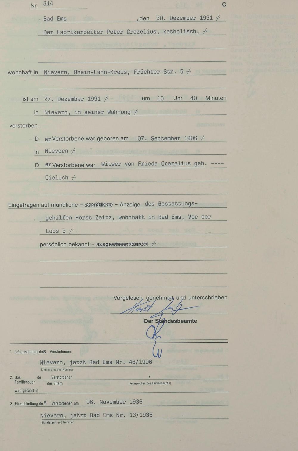 1318: Sterberegister 1991