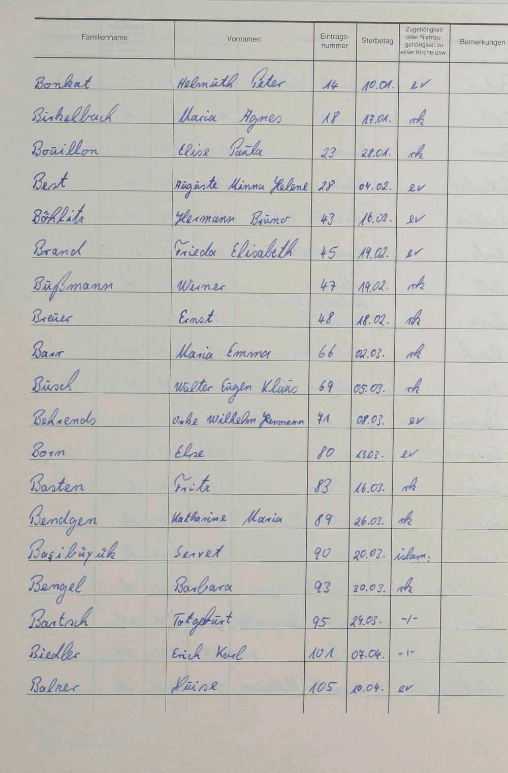 Sterberegister 1991
