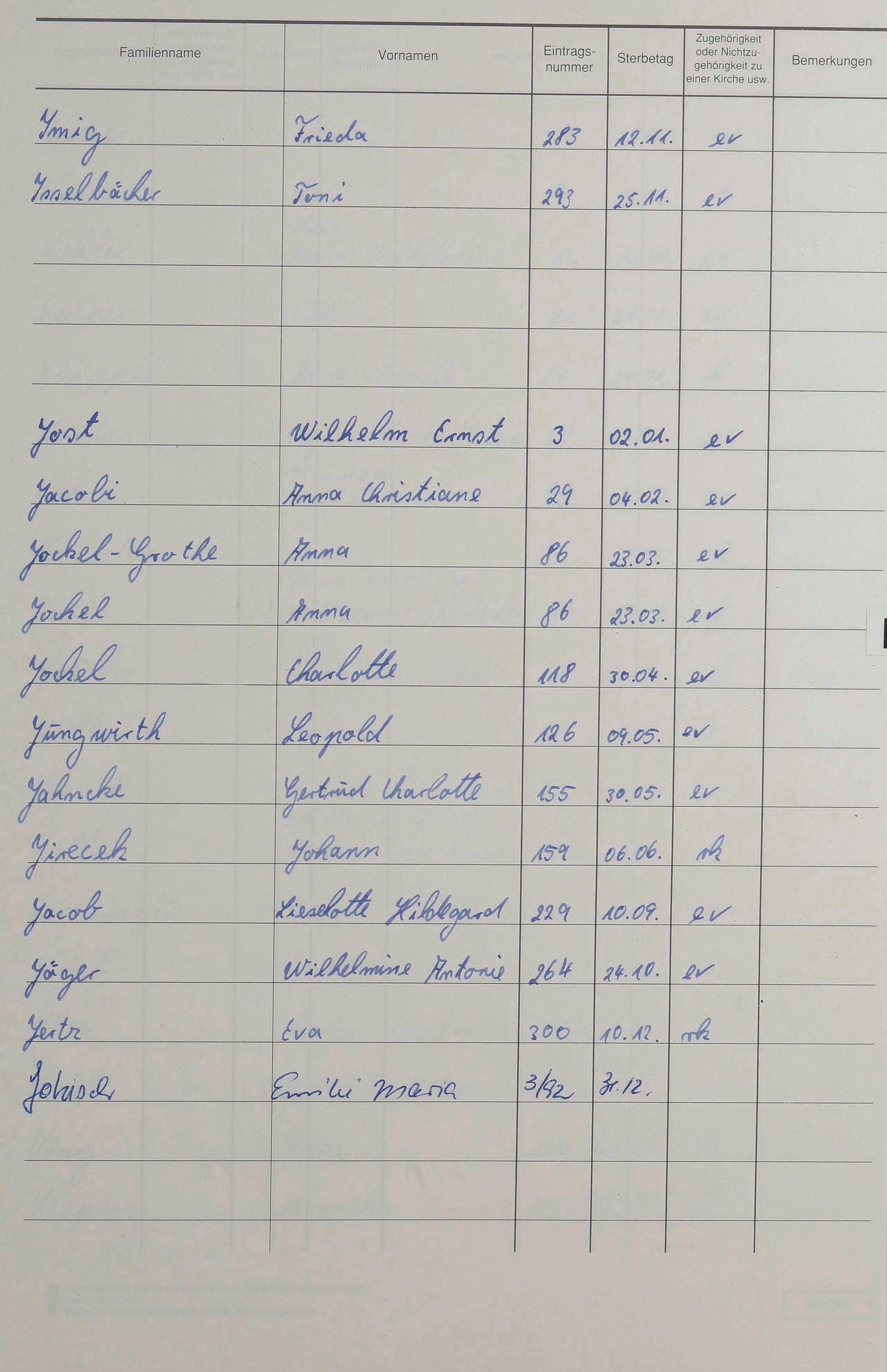 Sterberegister 1991