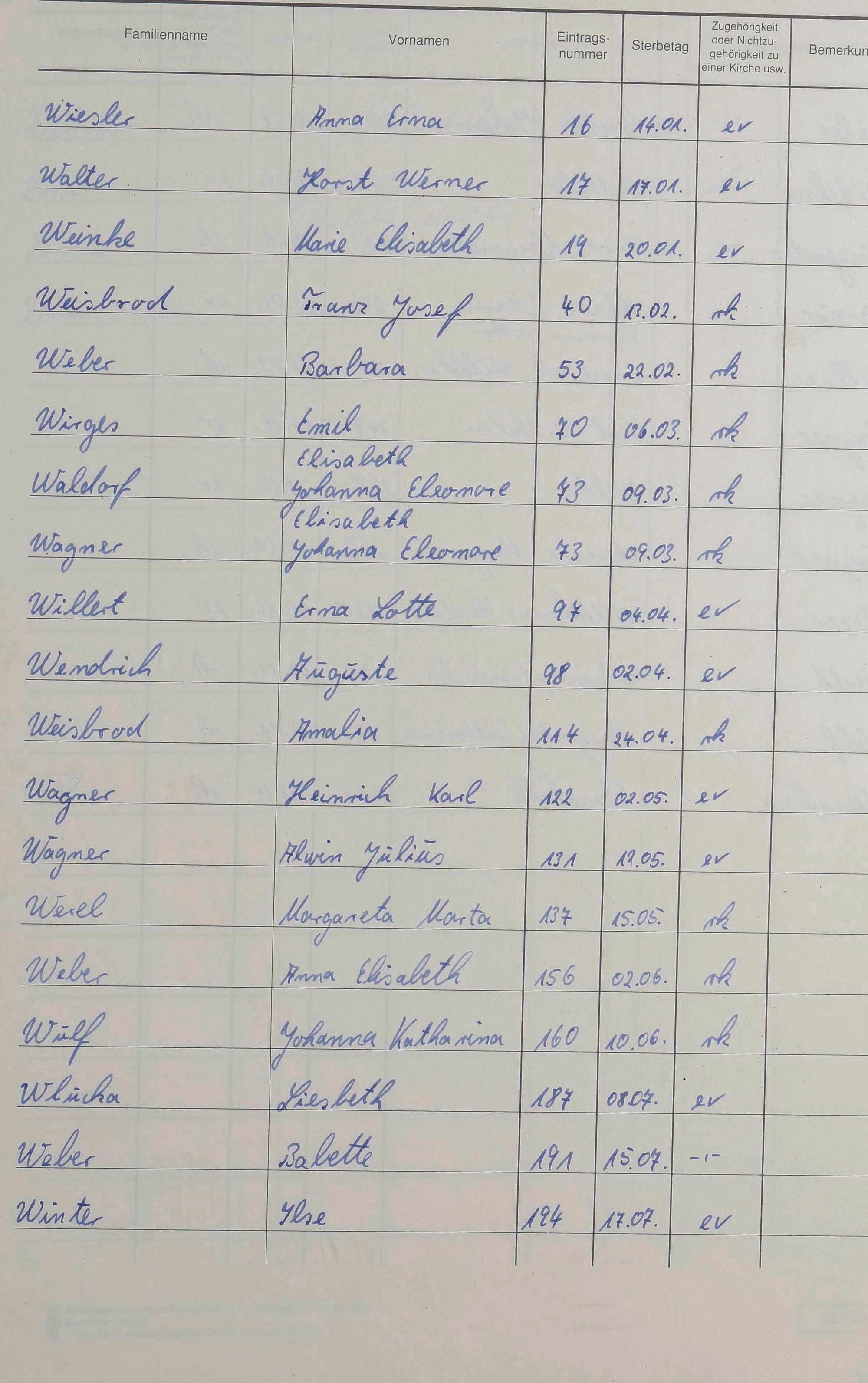 Sterberegister 1991