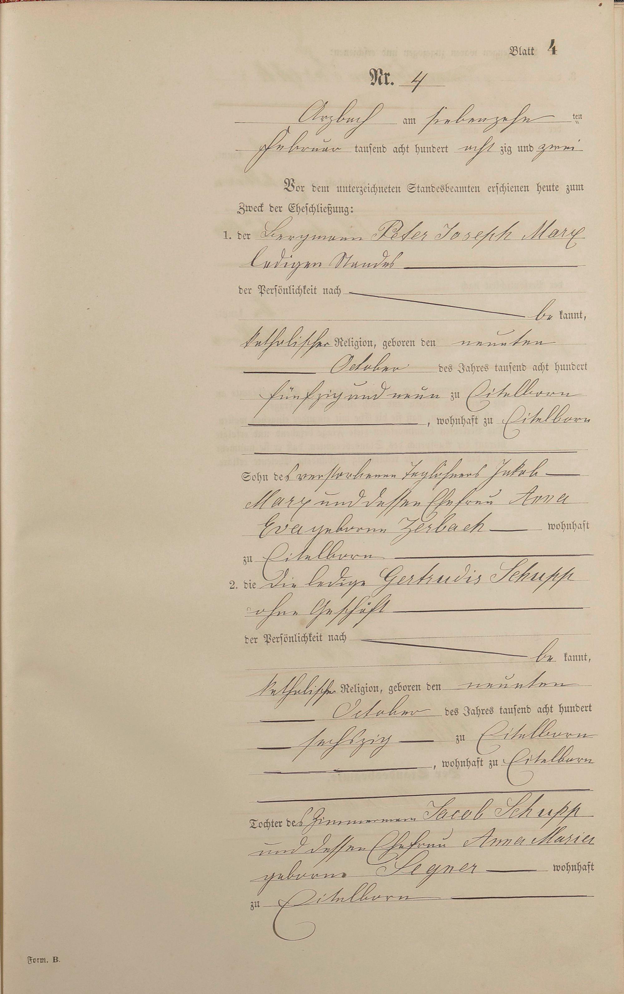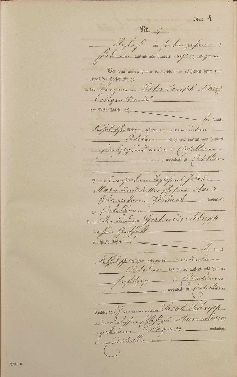 Heiratsregister 1882
