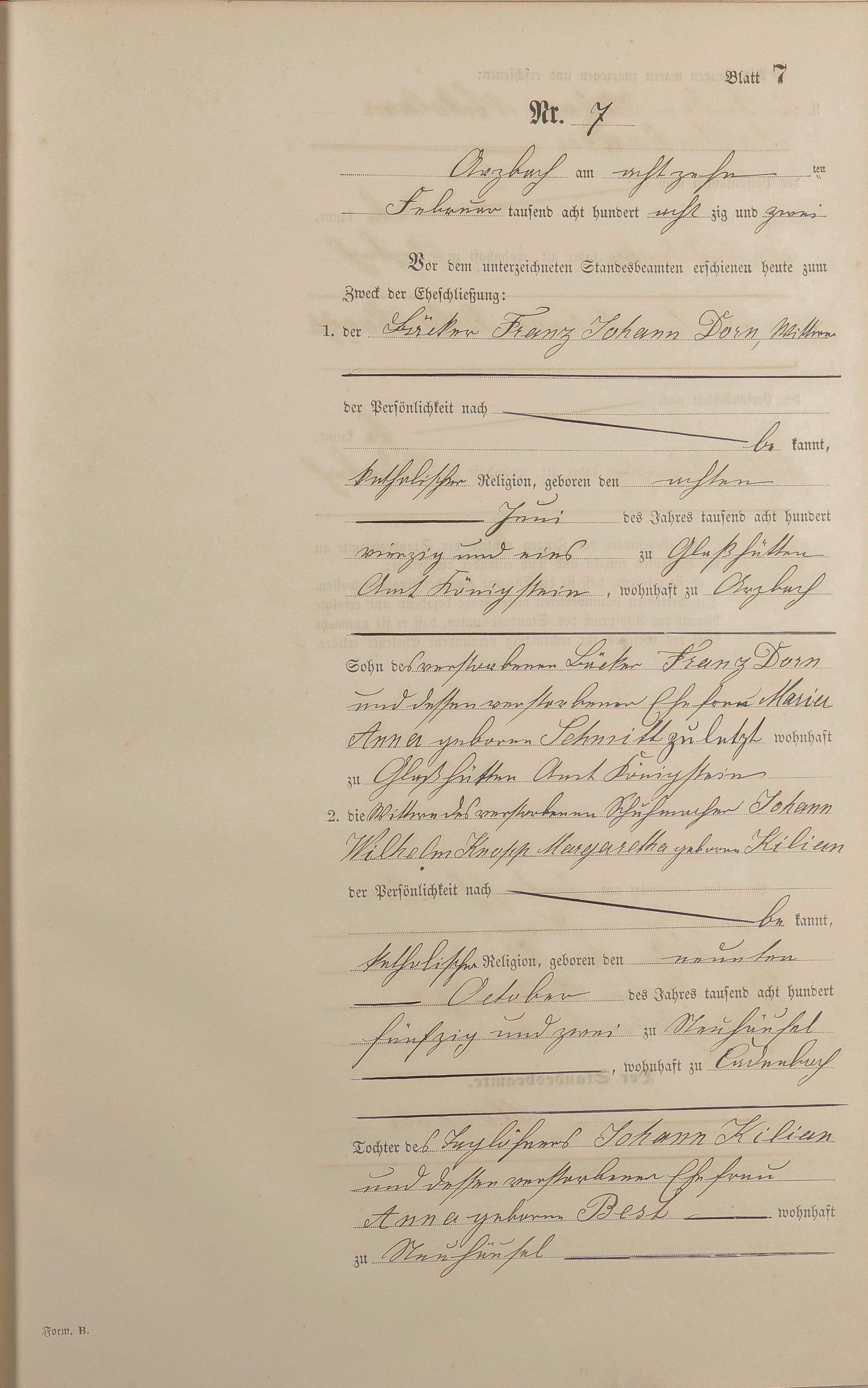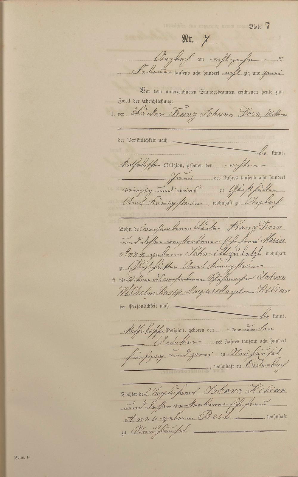 Heiratsregister 1882