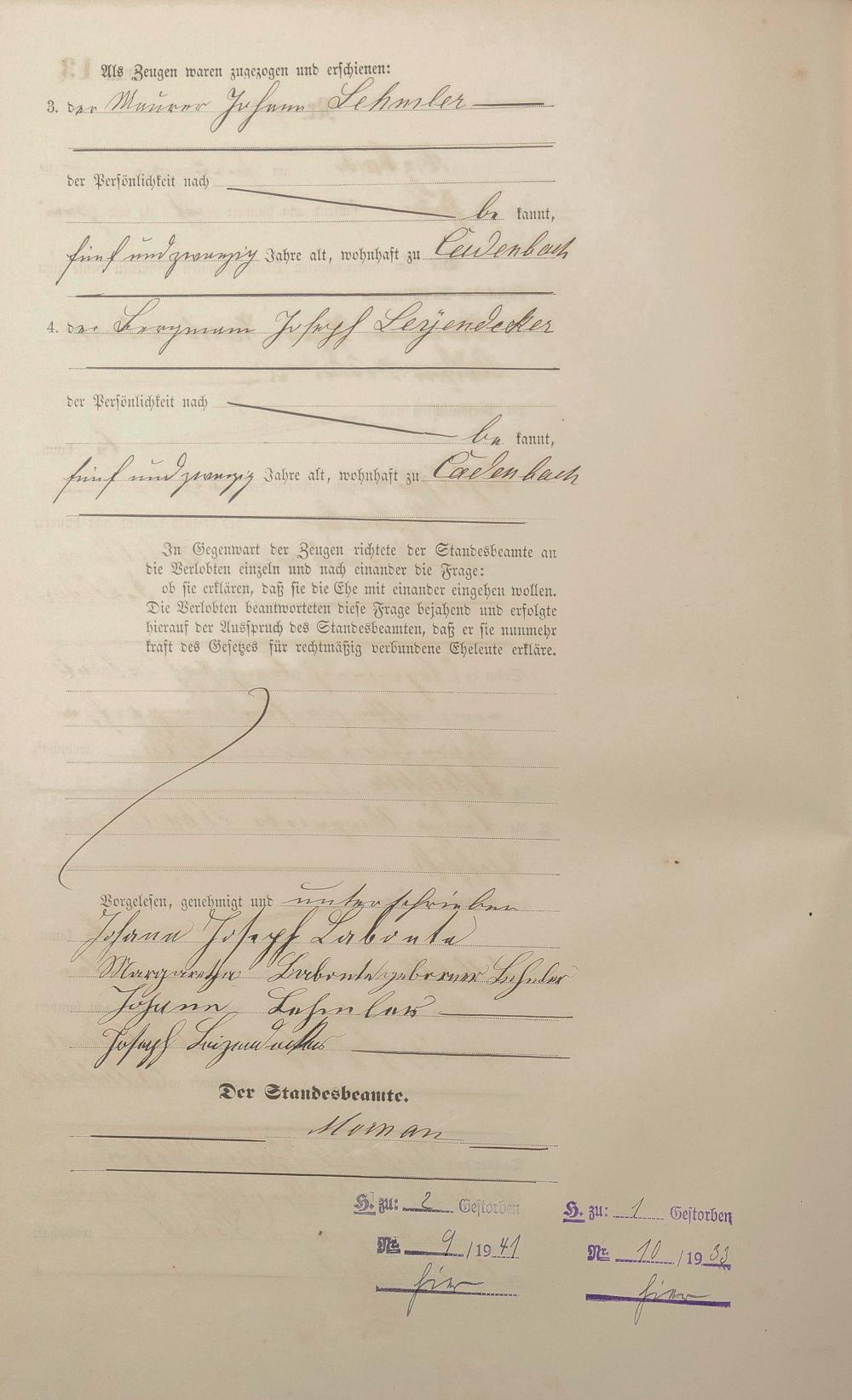 Heiratsregister 1882