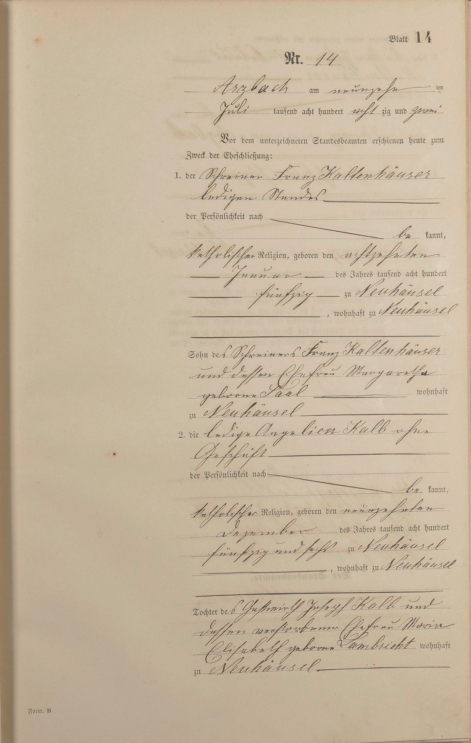 Heiratsregister 1882