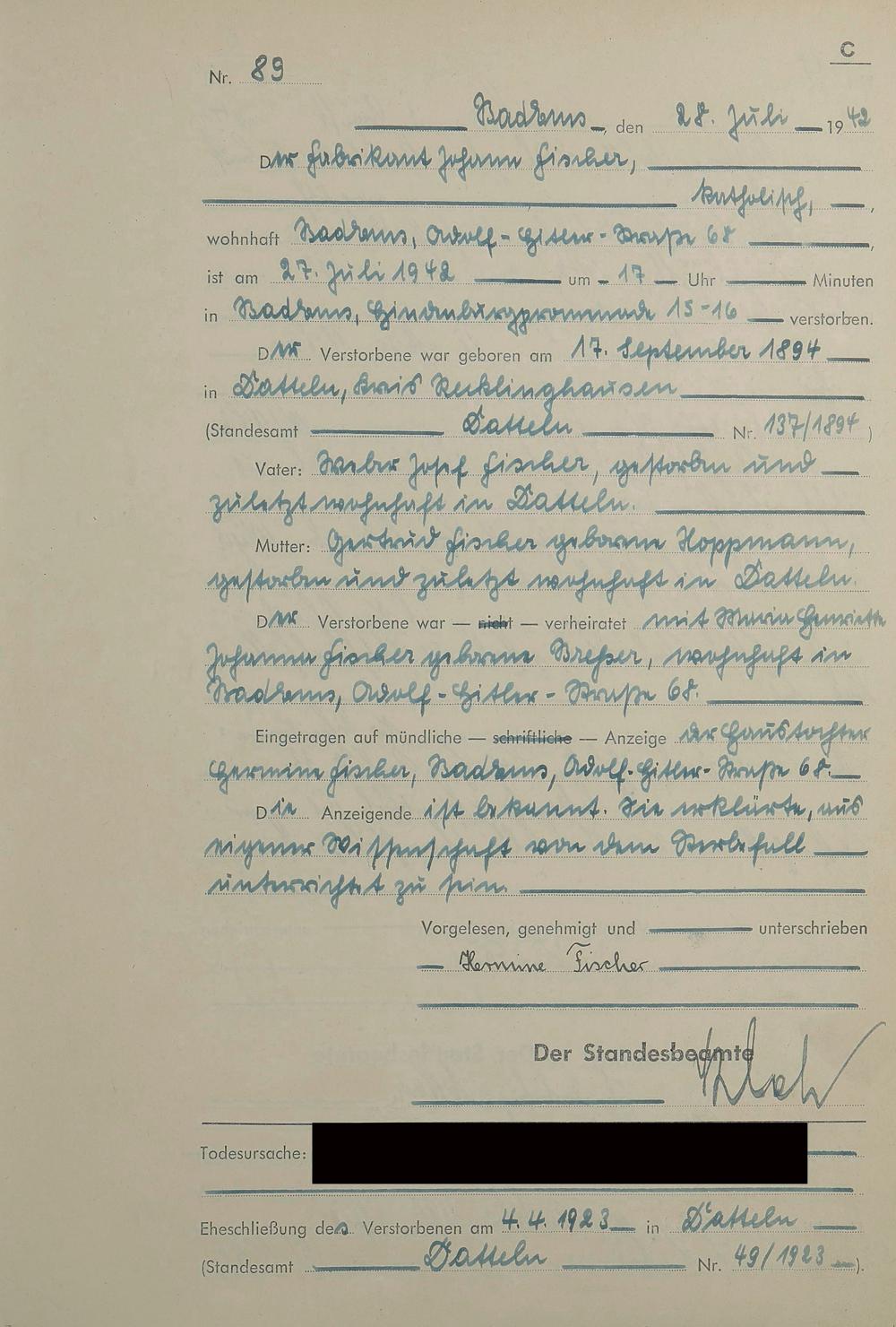 Sterberegister 1942