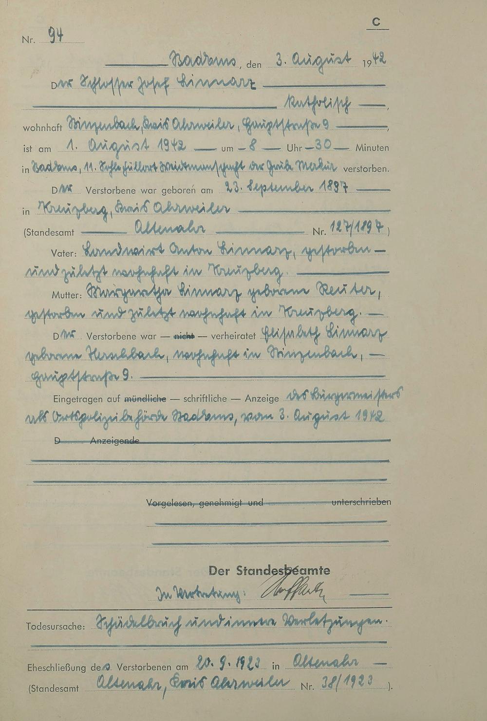 1518: Sterberegister 1942
