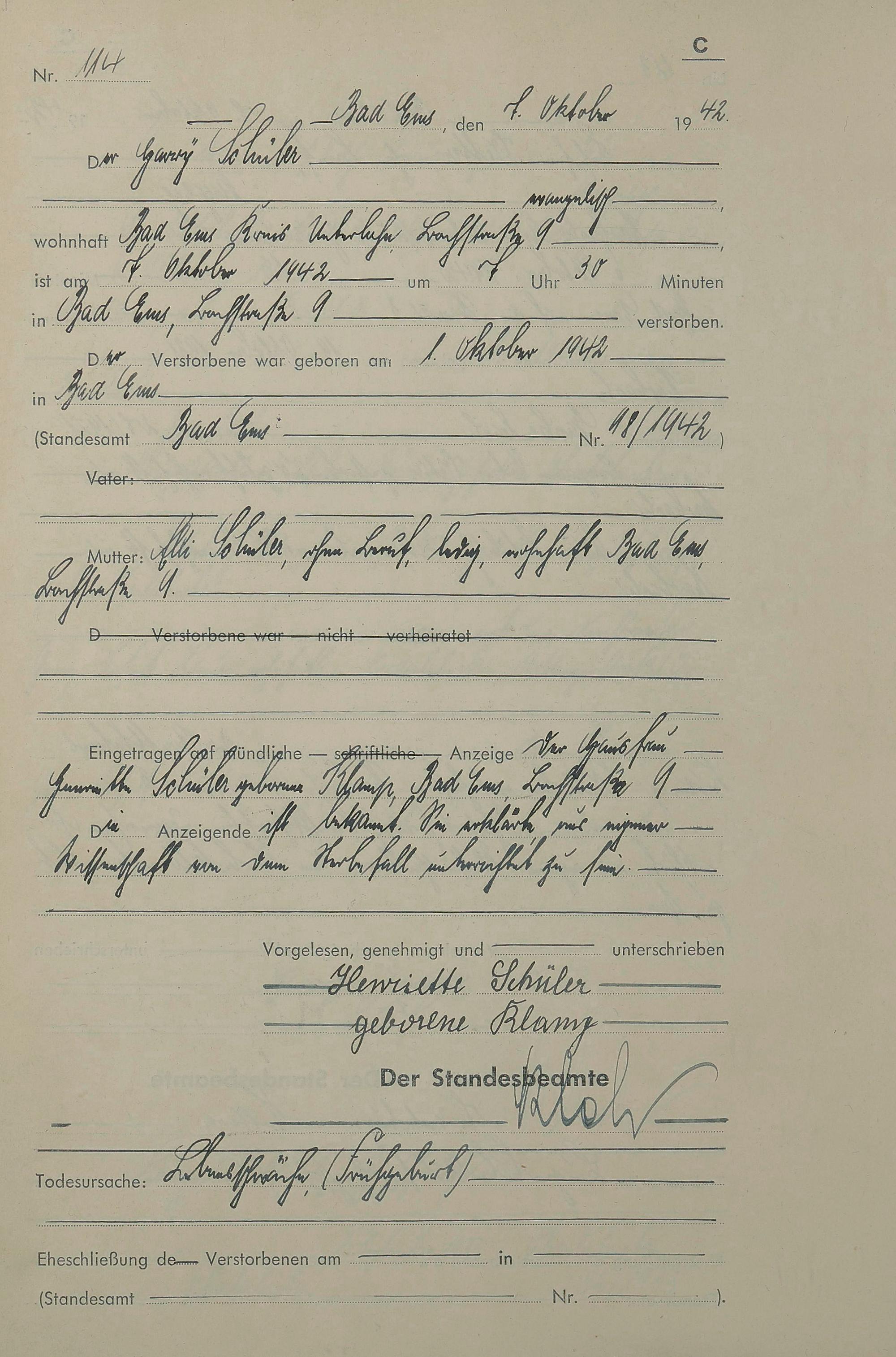 1518: Sterberegister 1942