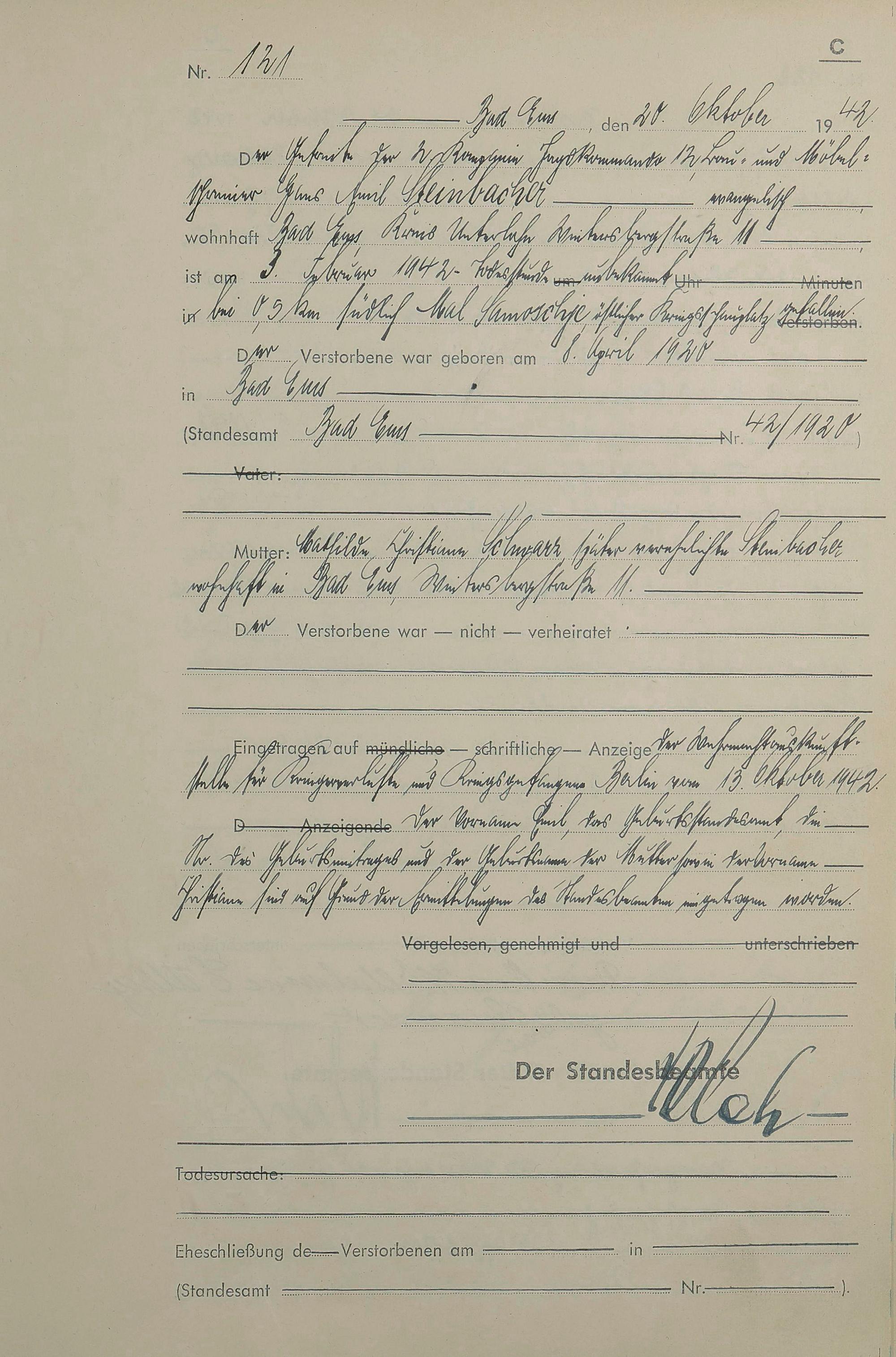 1518: Sterberegister 1942