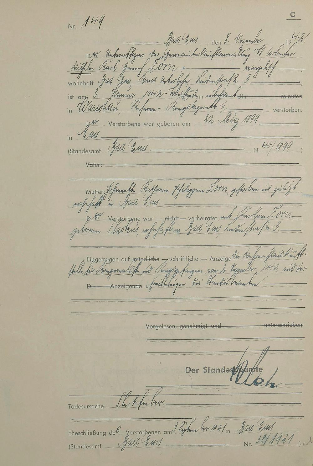 1518: Sterberegister 1942