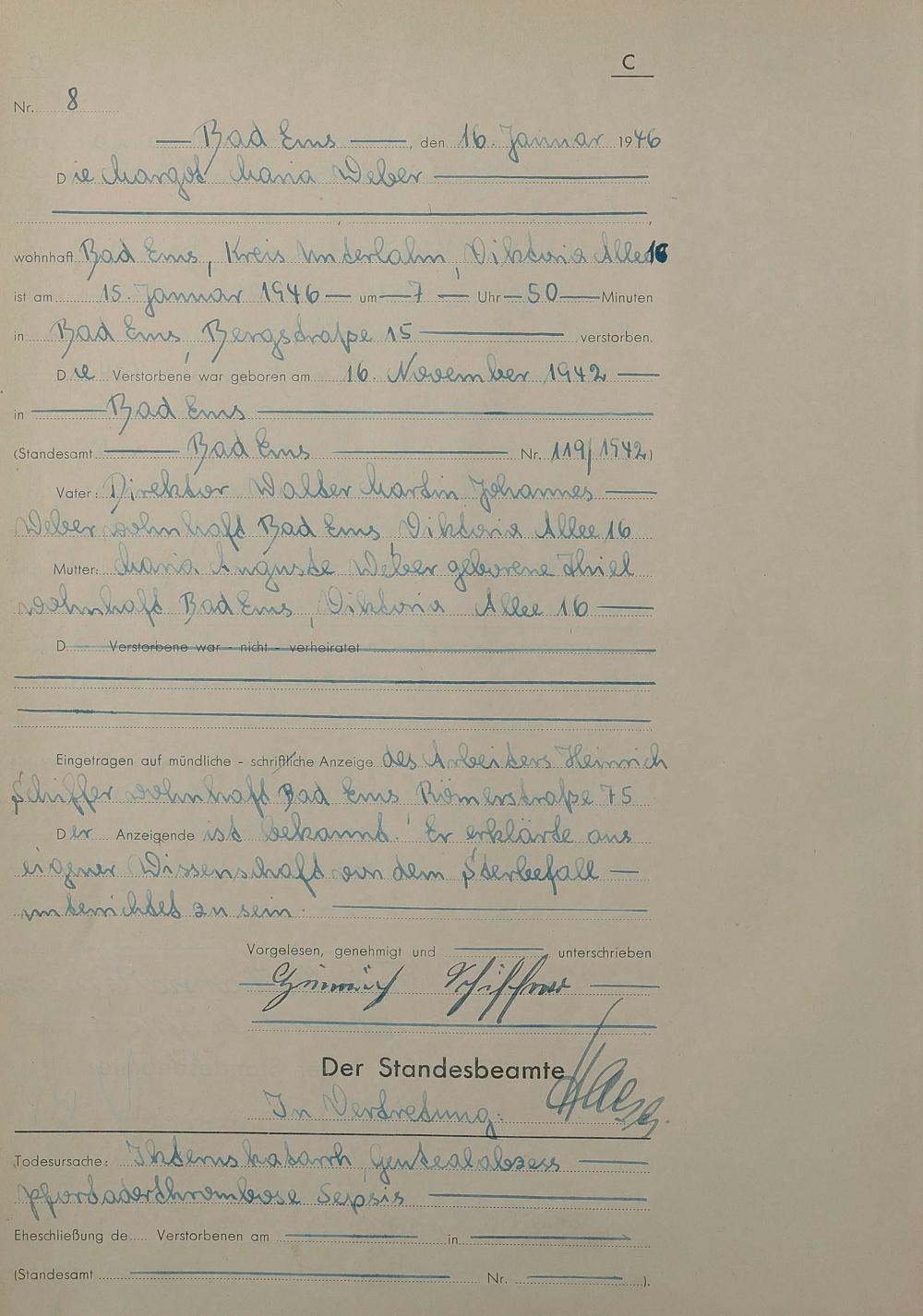 Sterberegister 1946