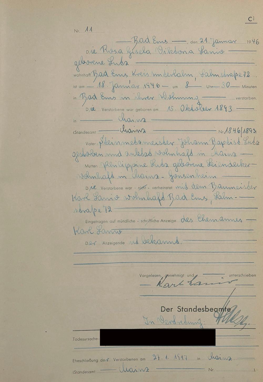 1522: Sterberegister 1946