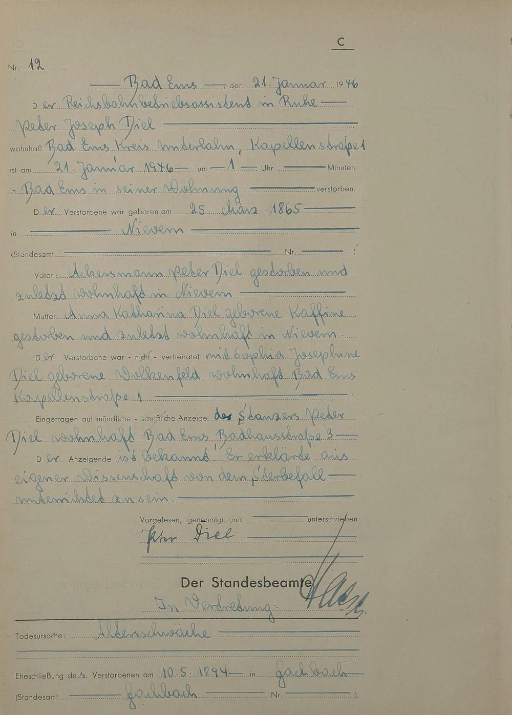 Sterberegister 1946
