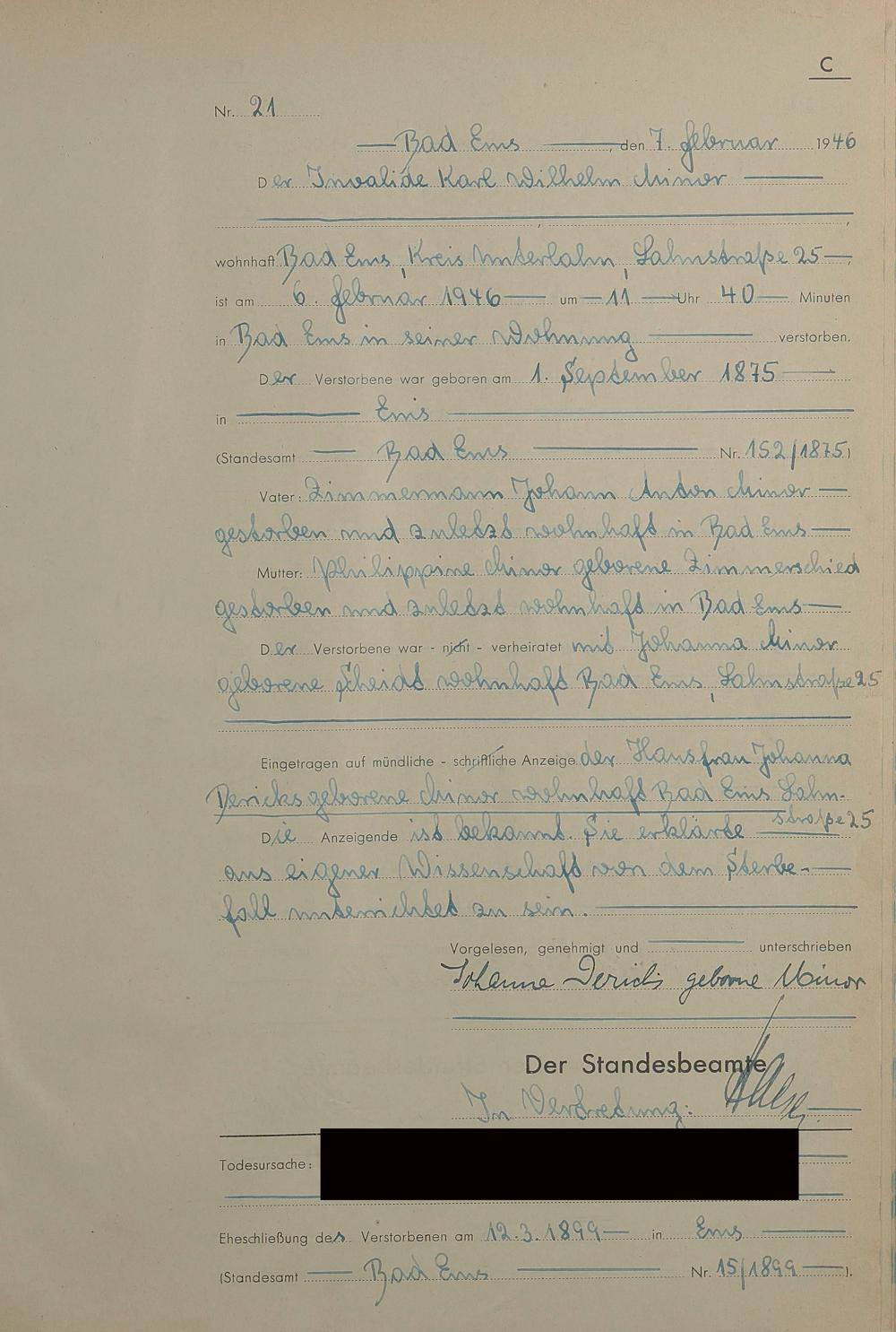 1522: Sterberegister 1946