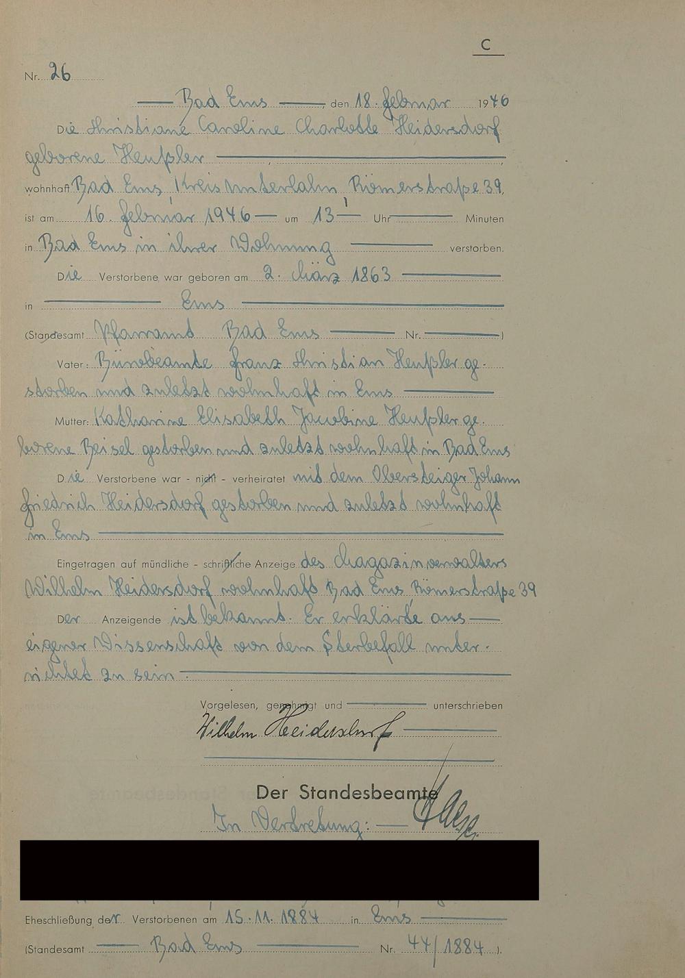1522: Sterberegister 1946
