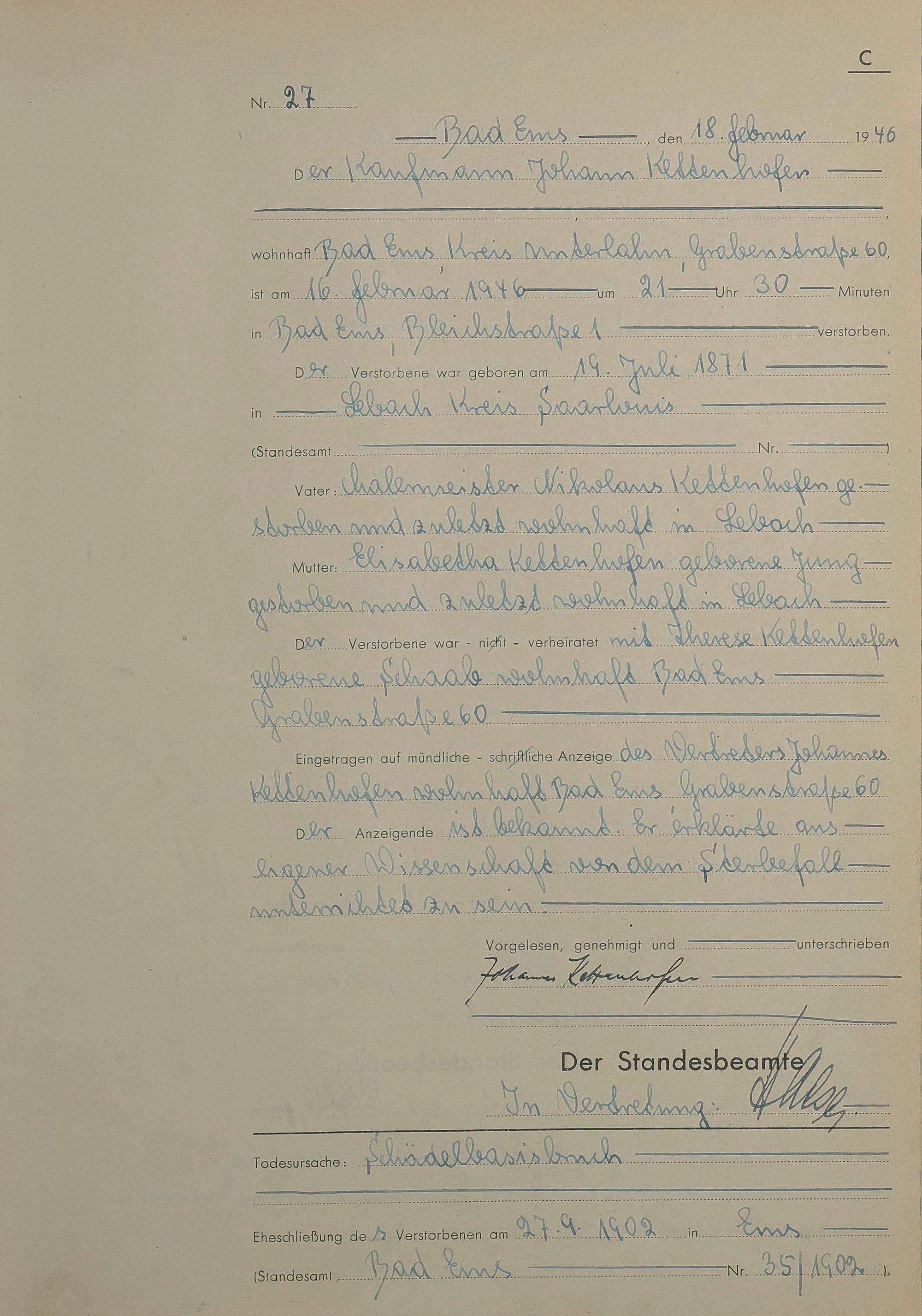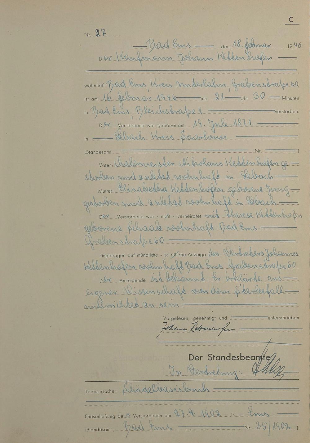 1522: Sterberegister 1946