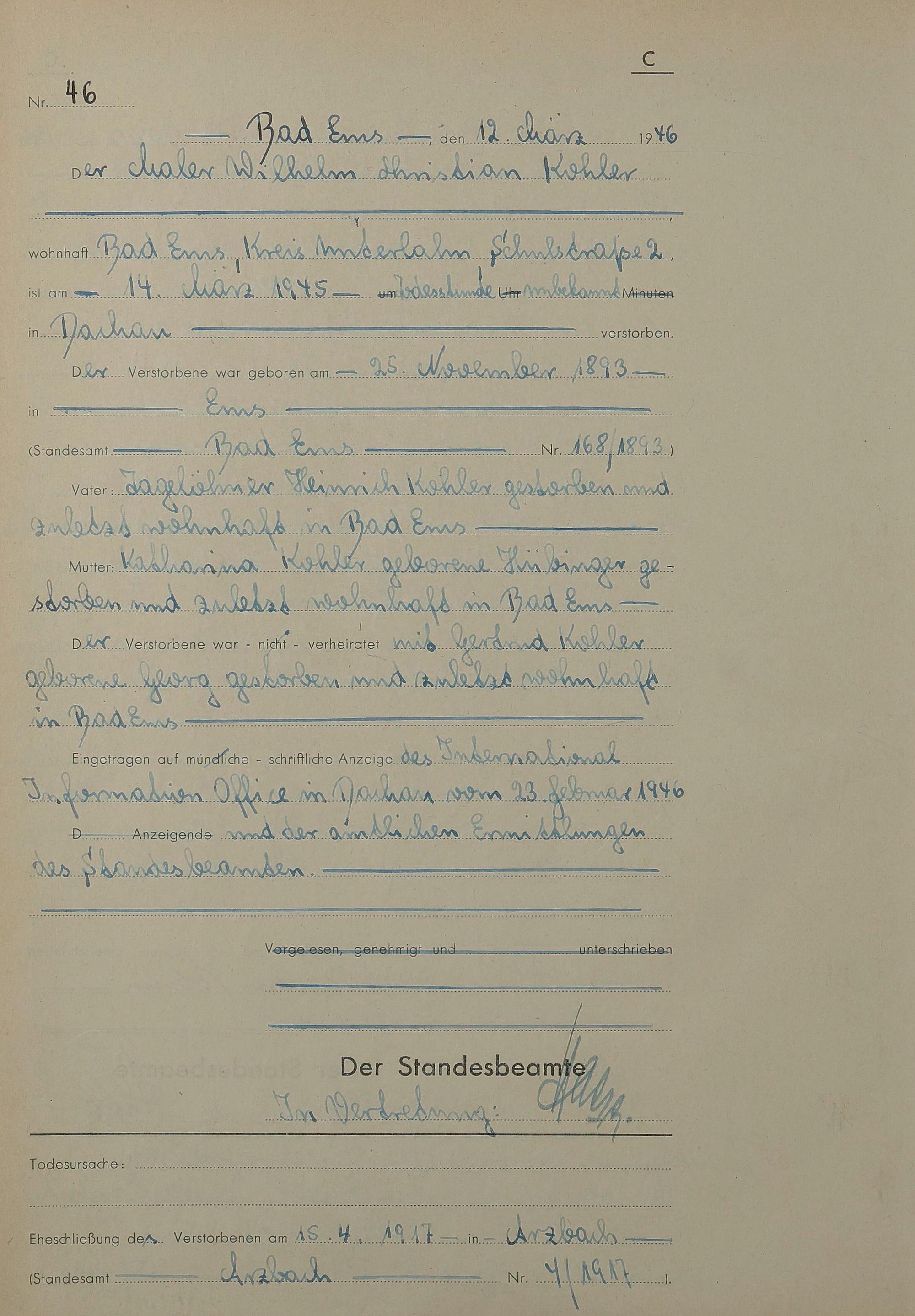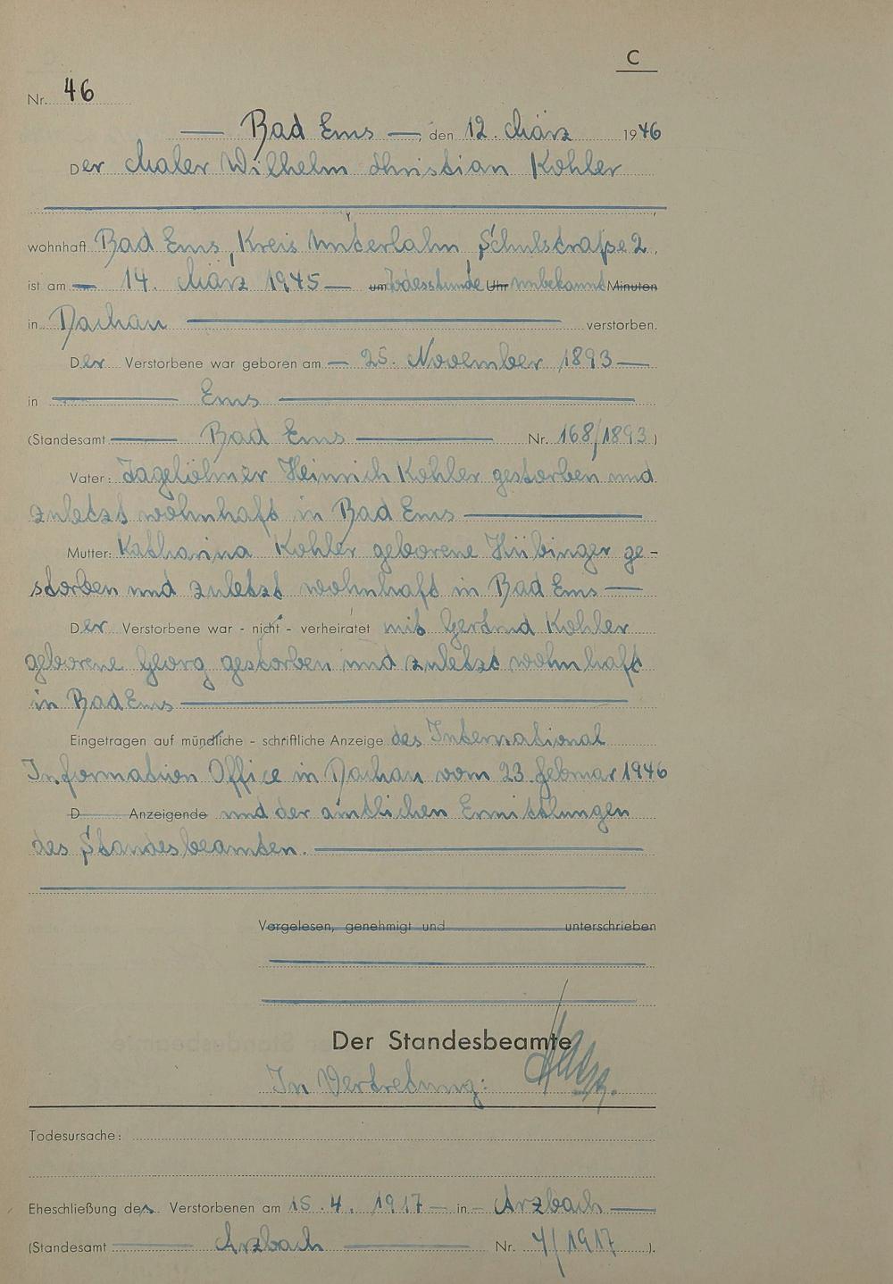 1522: Sterberegister 1946
