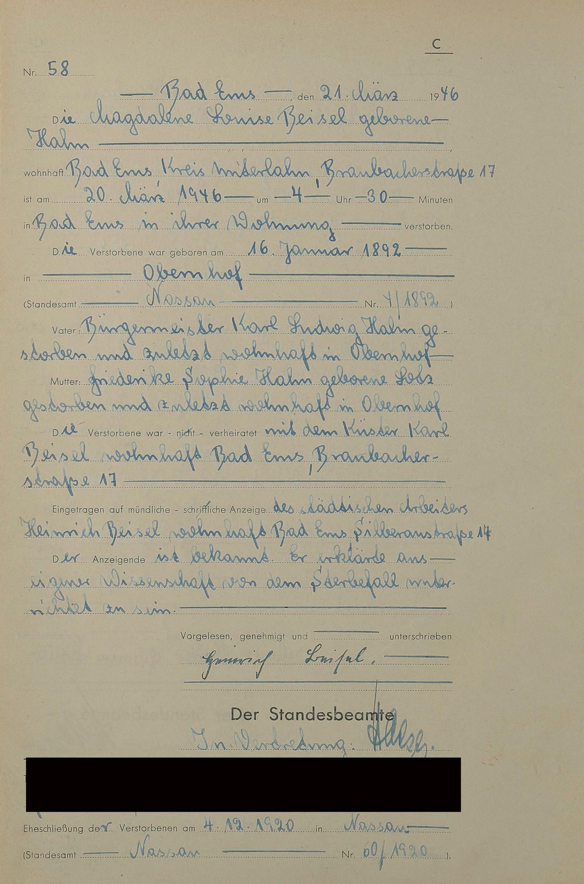 Sterberegister 1946