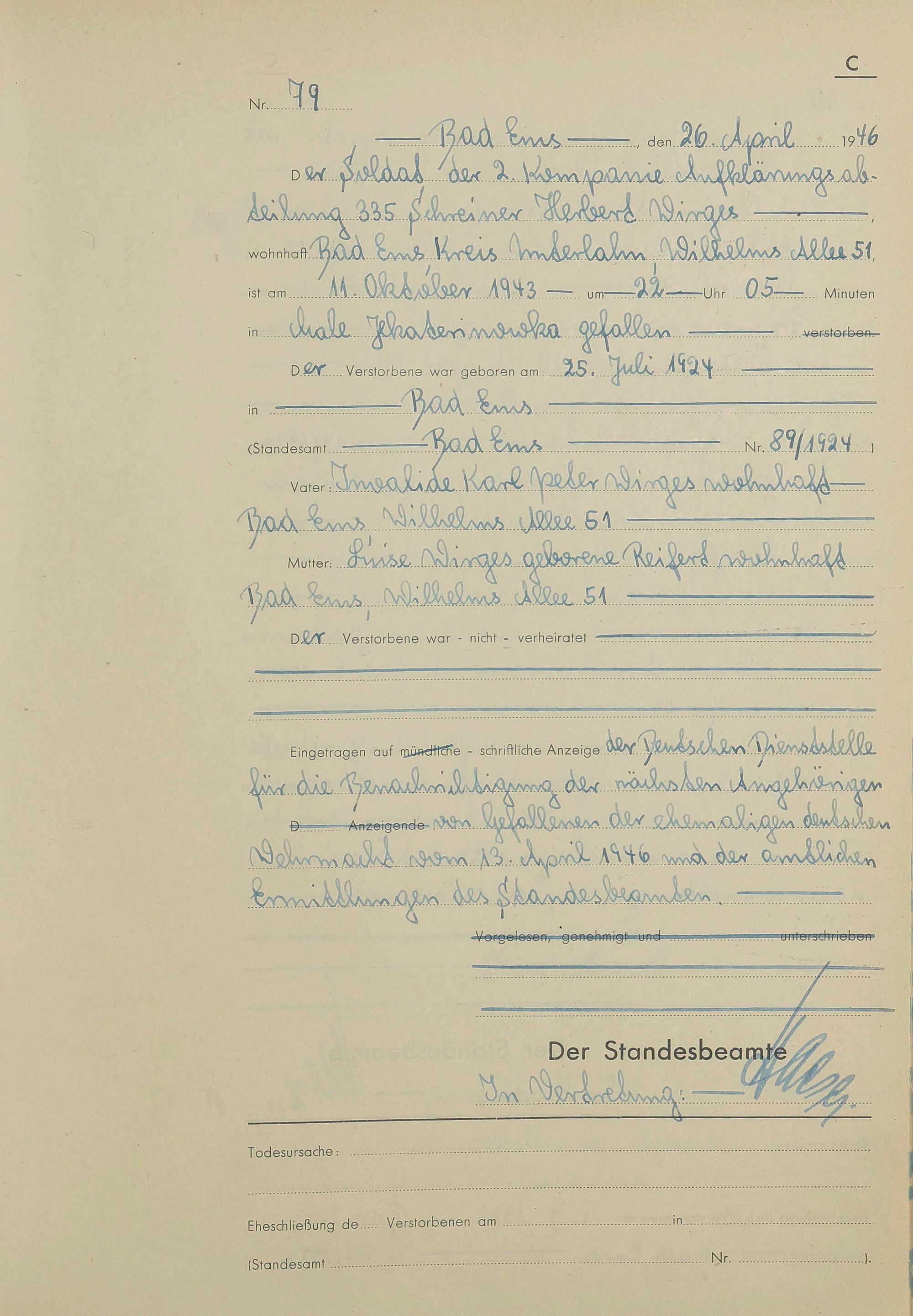 Sterberegister 1946