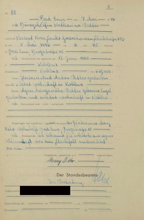 1522: Sterberegister 1946