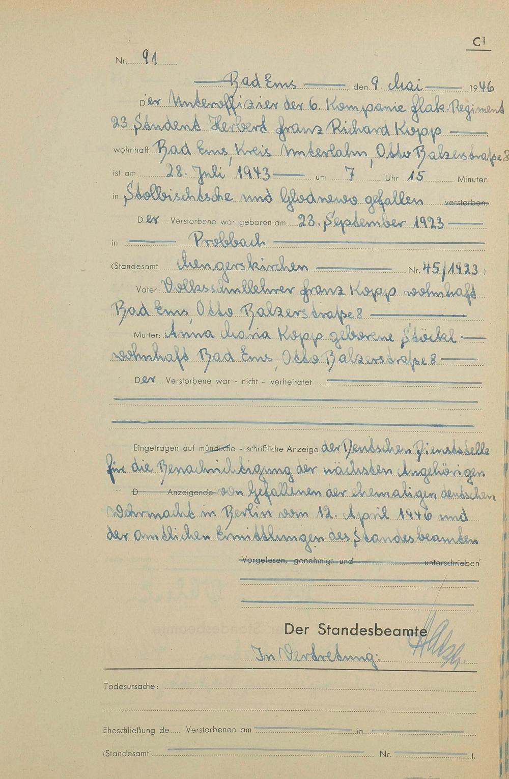 1522: Sterberegister 1946