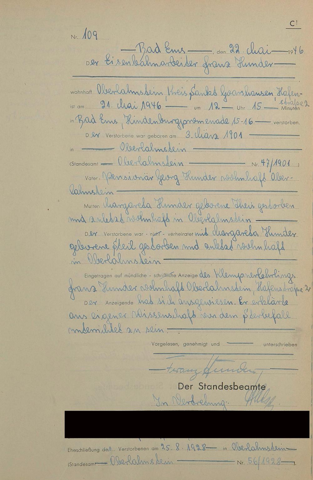 1522: Sterberegister 1946