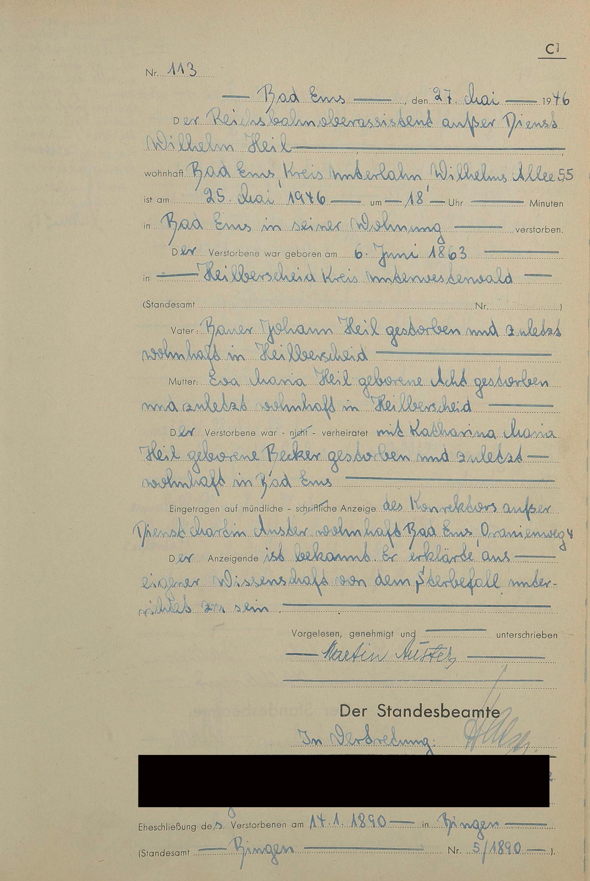 1522: Sterberegister 1946