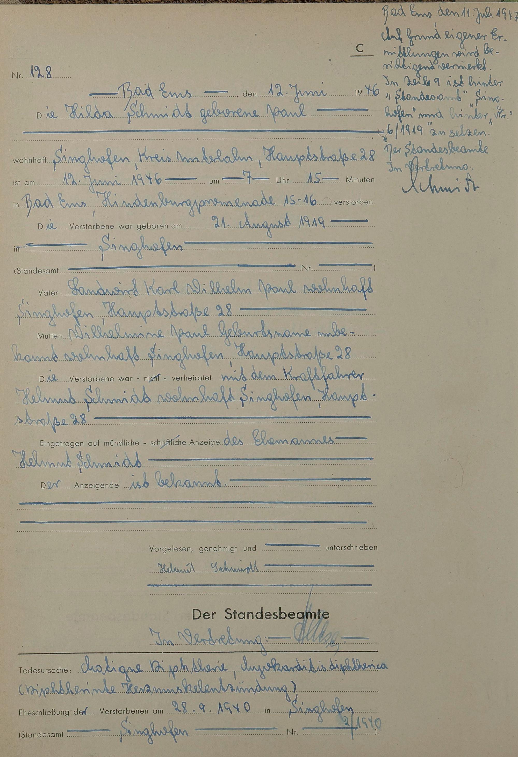 1522: Sterberegister 1946