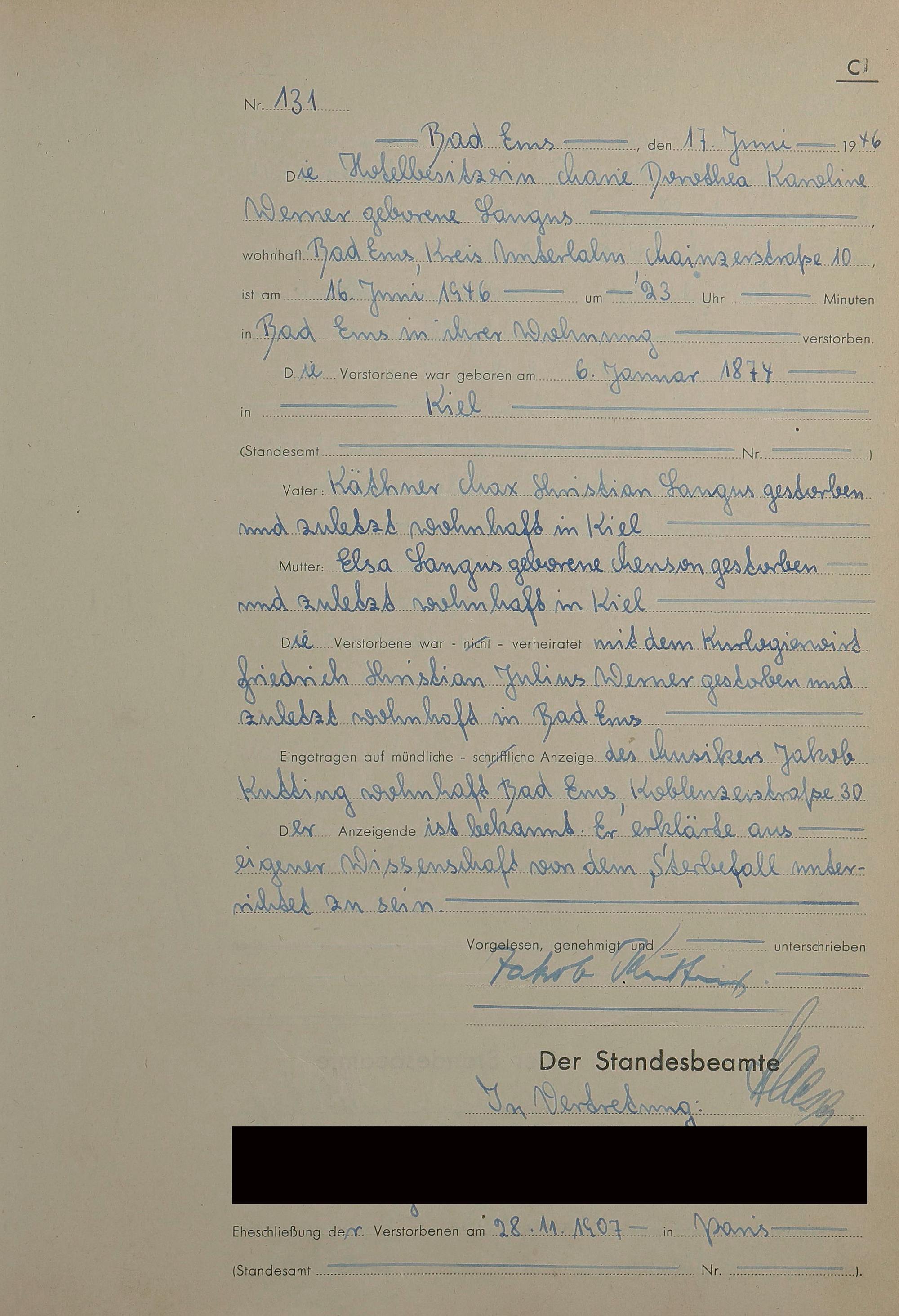 Sterberegister 1946