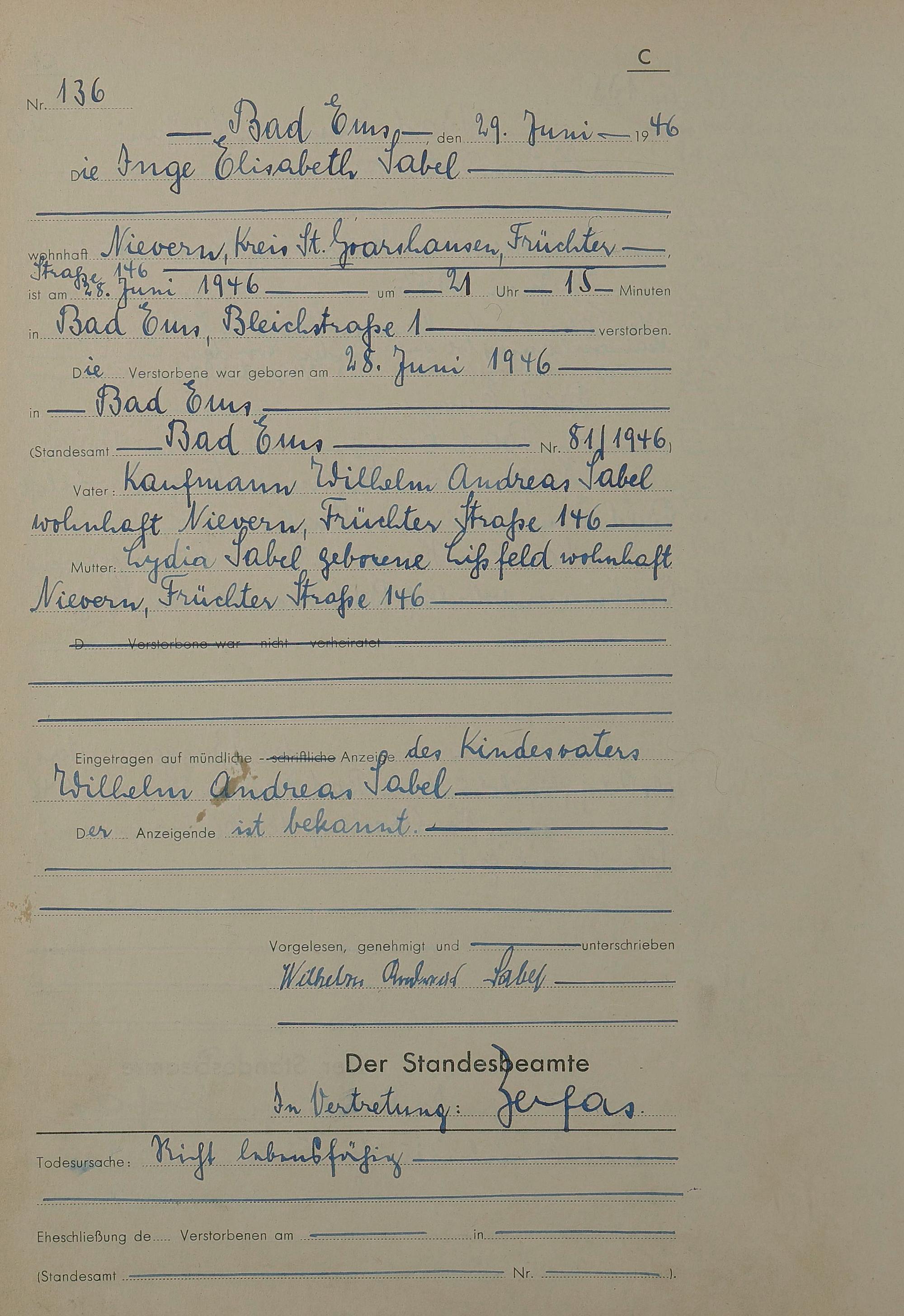 Sterberegister 1946