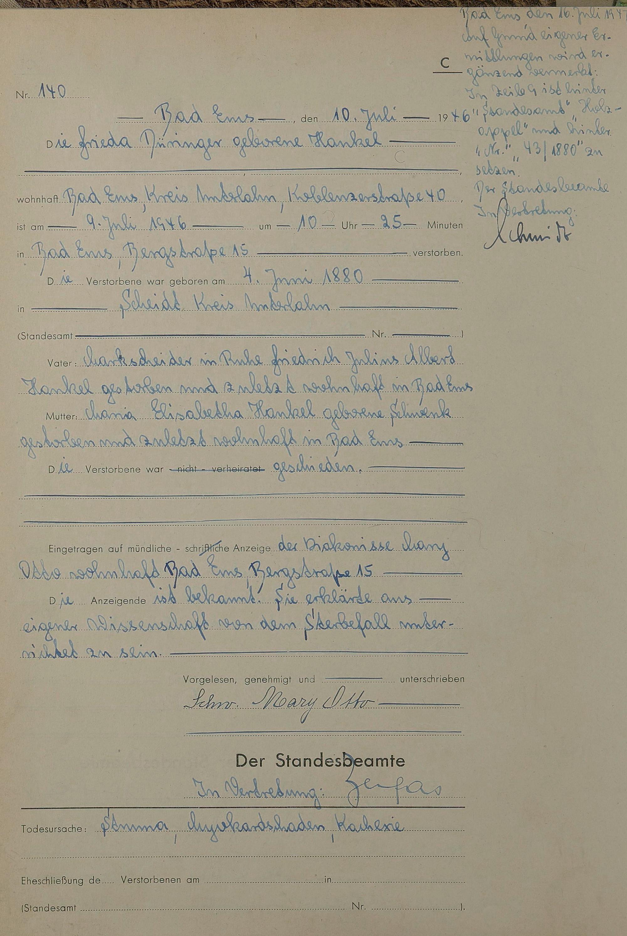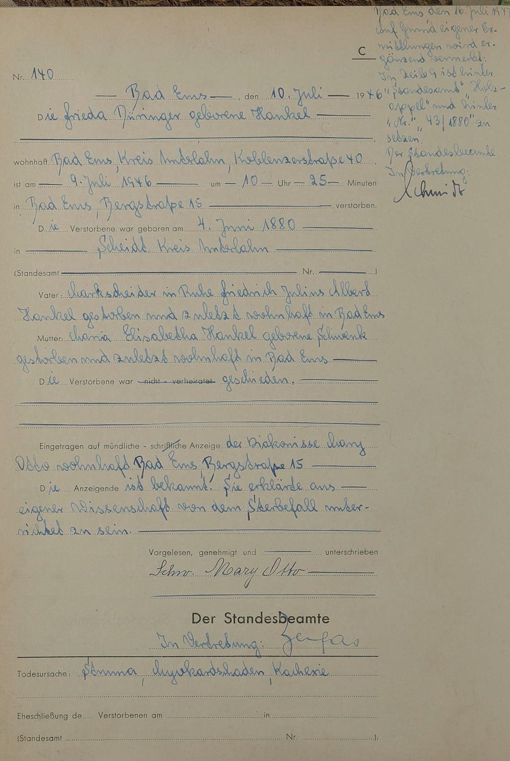 1522: Sterberegister 1946