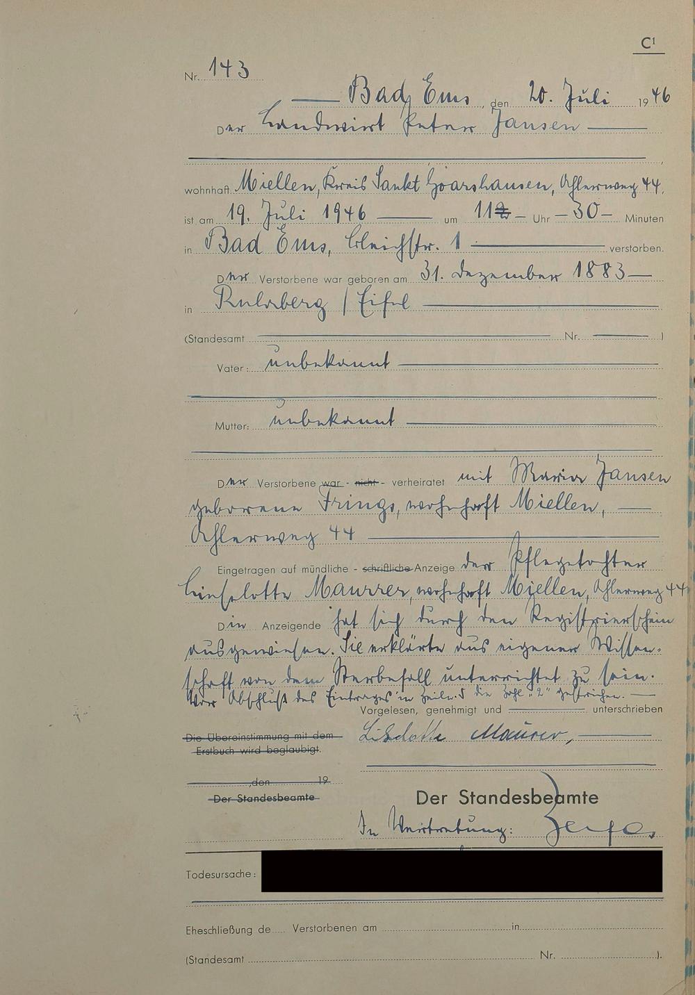 1522: Sterberegister 1946