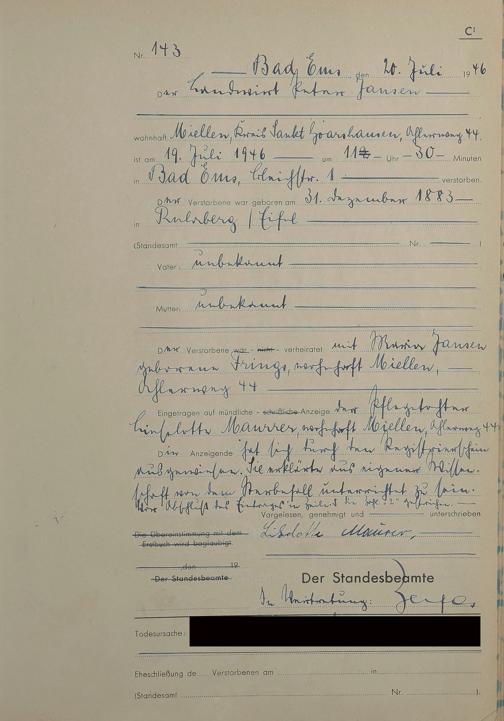 Sterberegister 1946