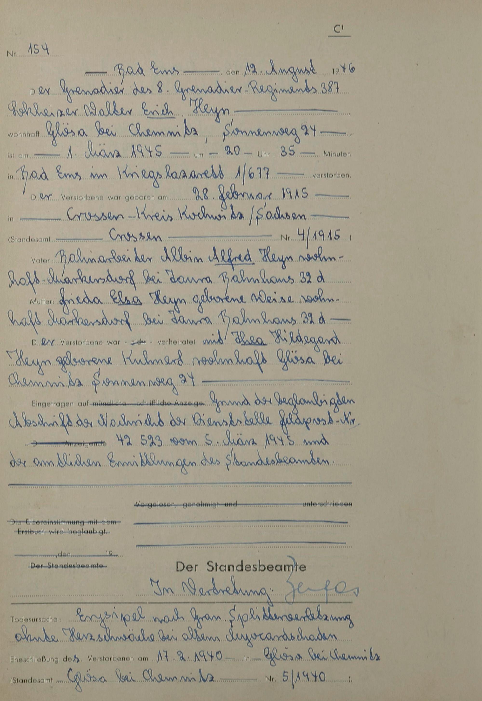 1522: Sterberegister 1946