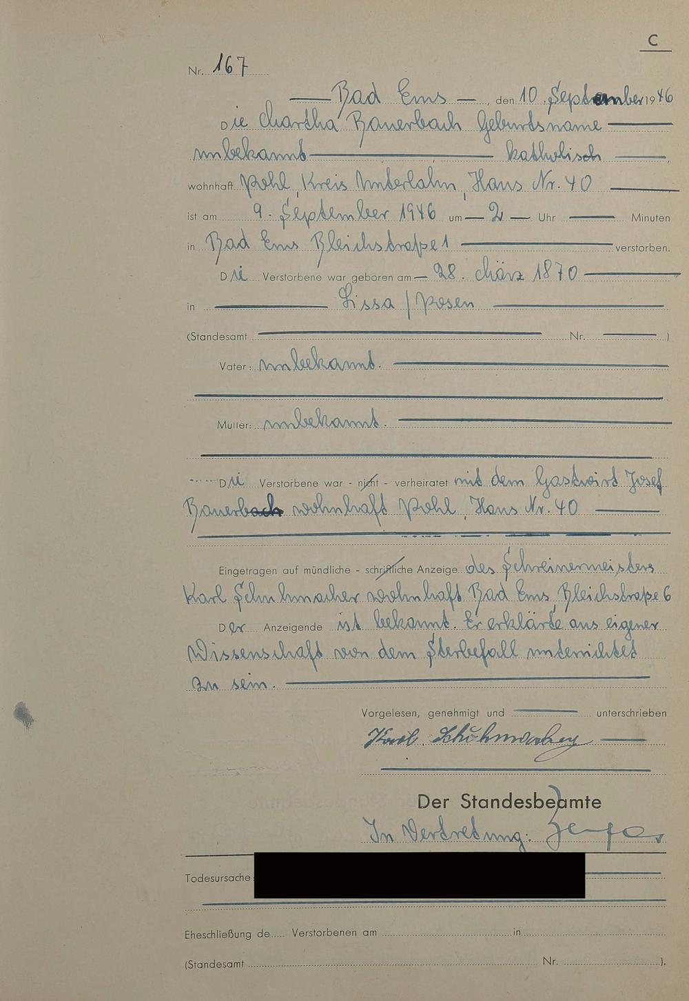 1522: Sterberegister 1946