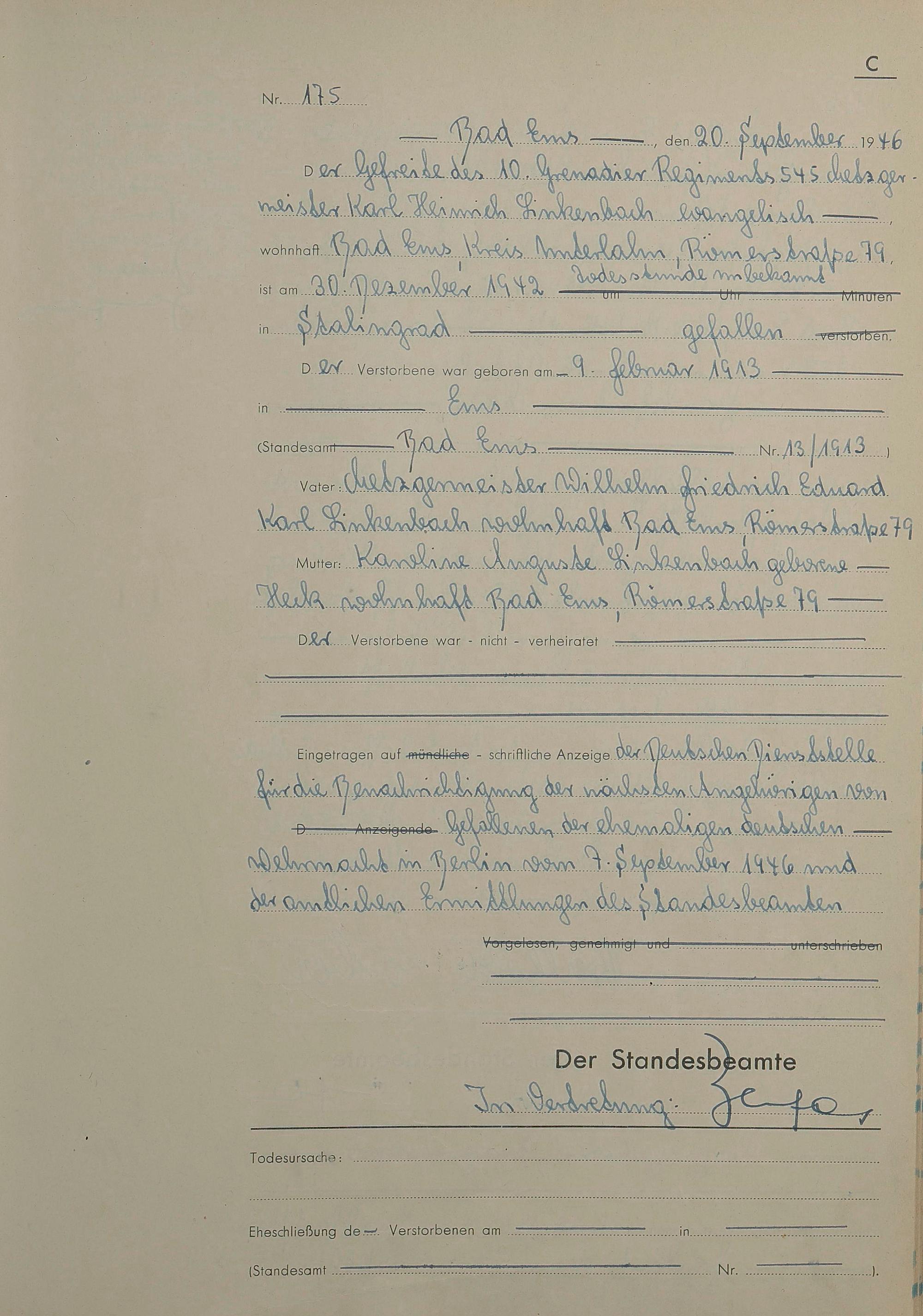 Sterberegister 1946
