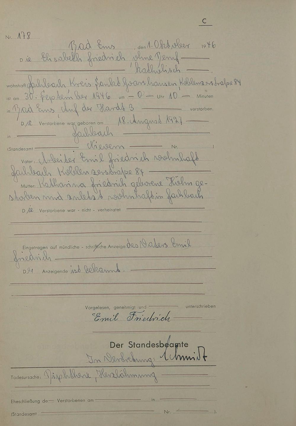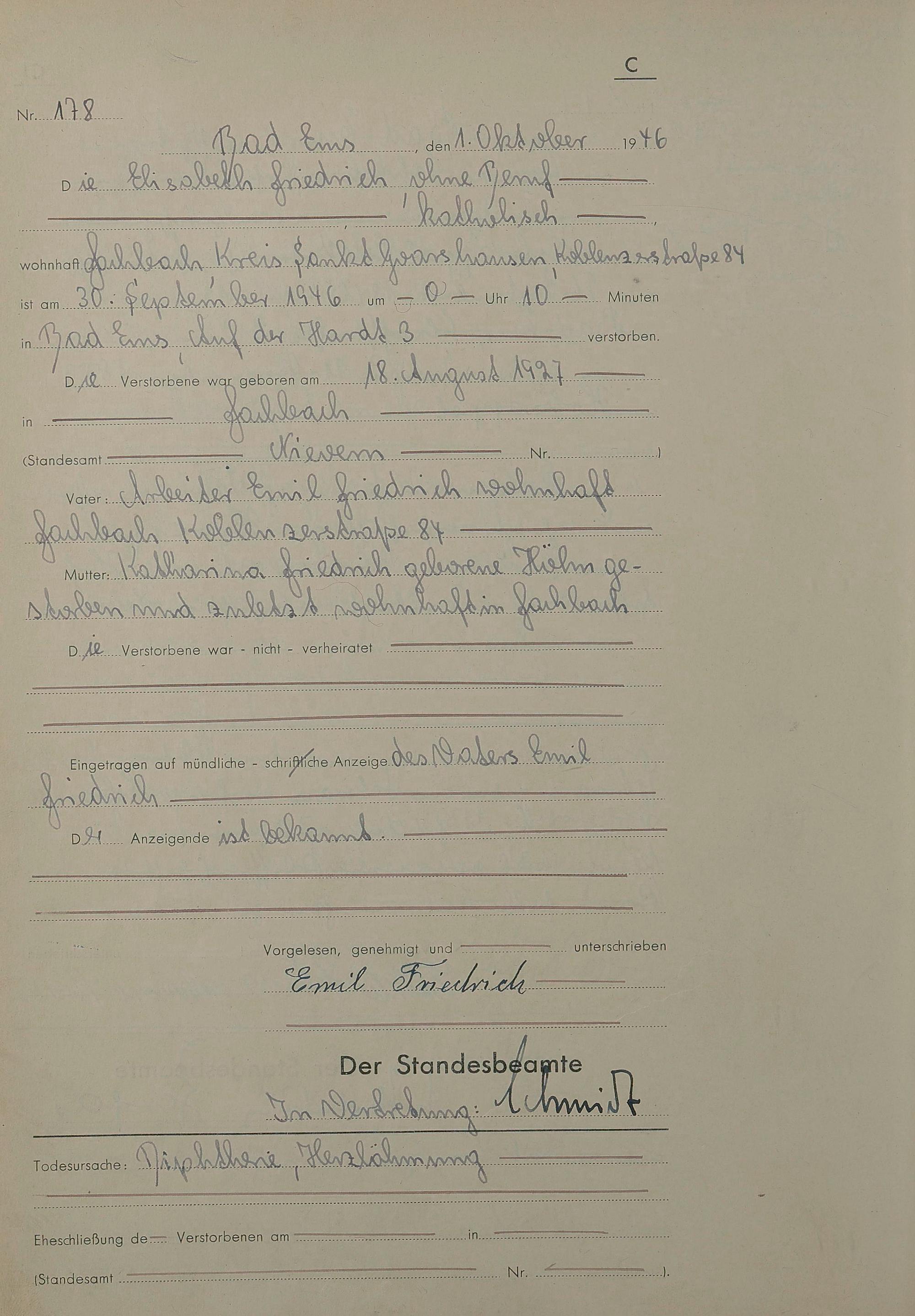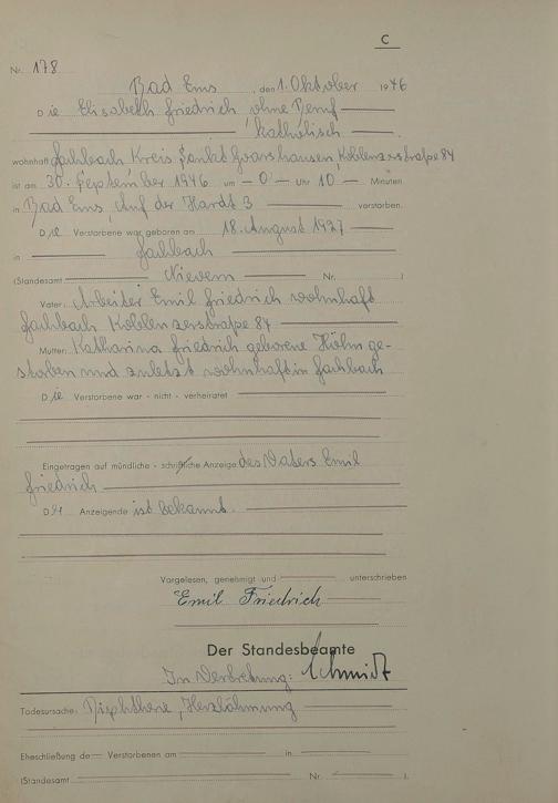 Sterberegister 1946