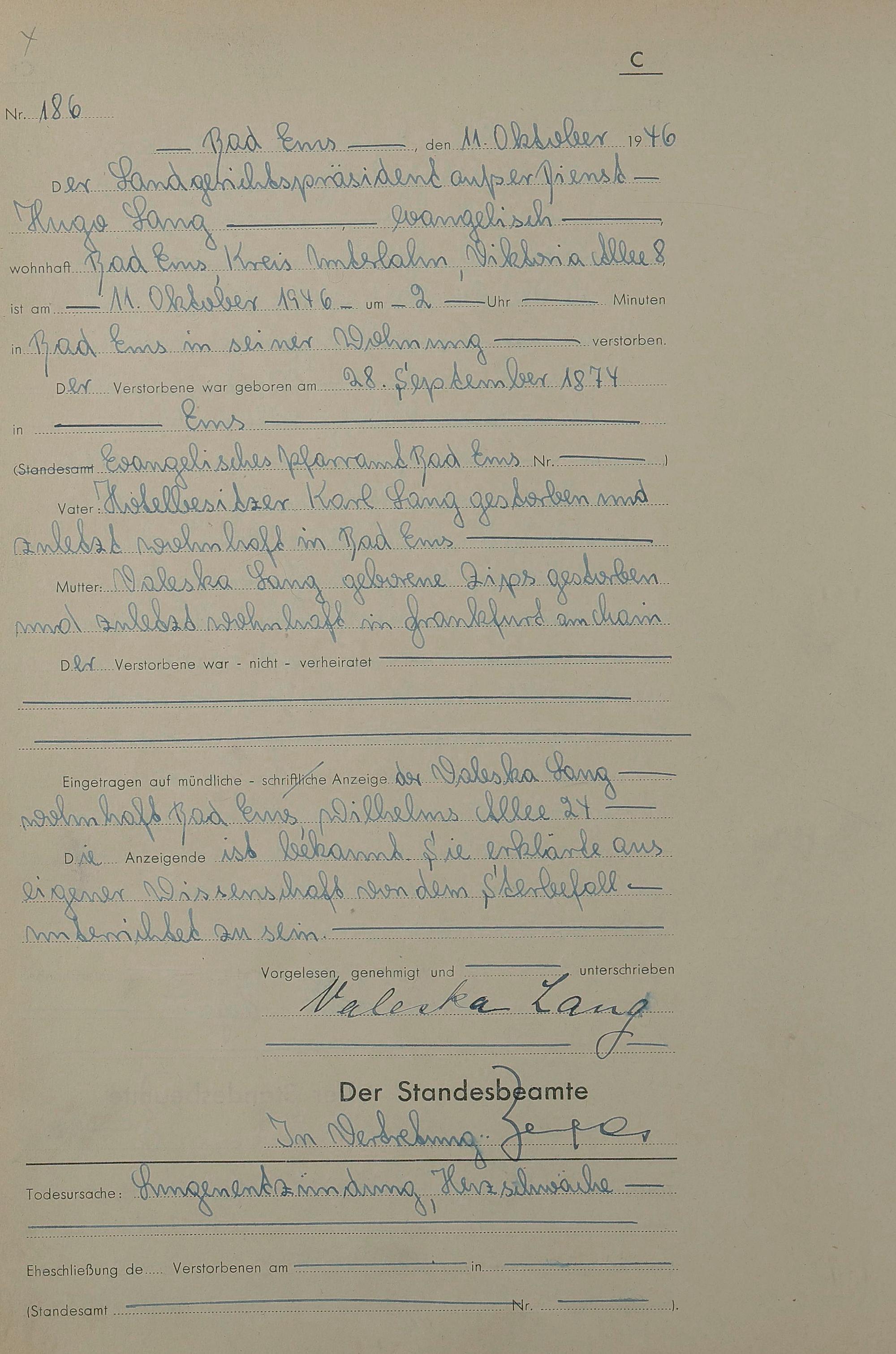 1522: Sterberegister 1946