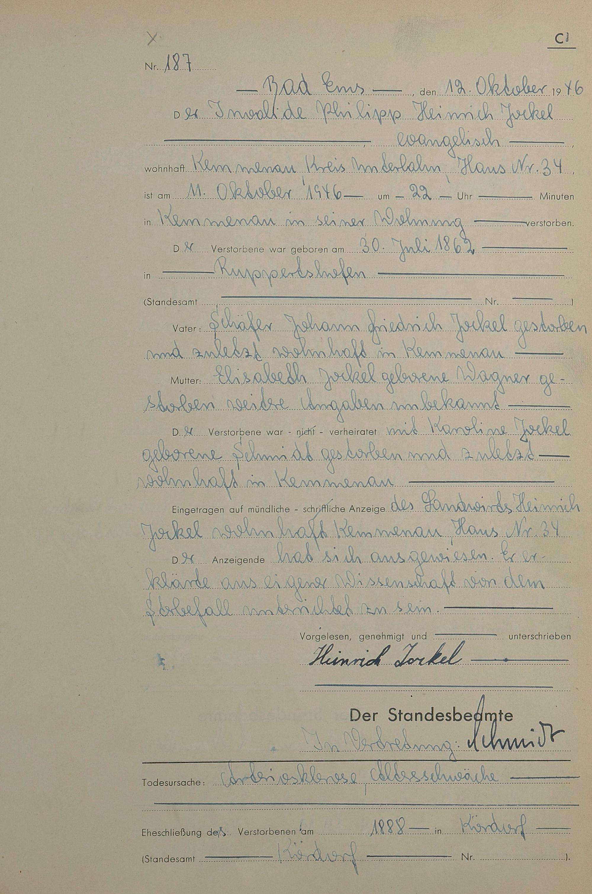 Sterberegister 1946