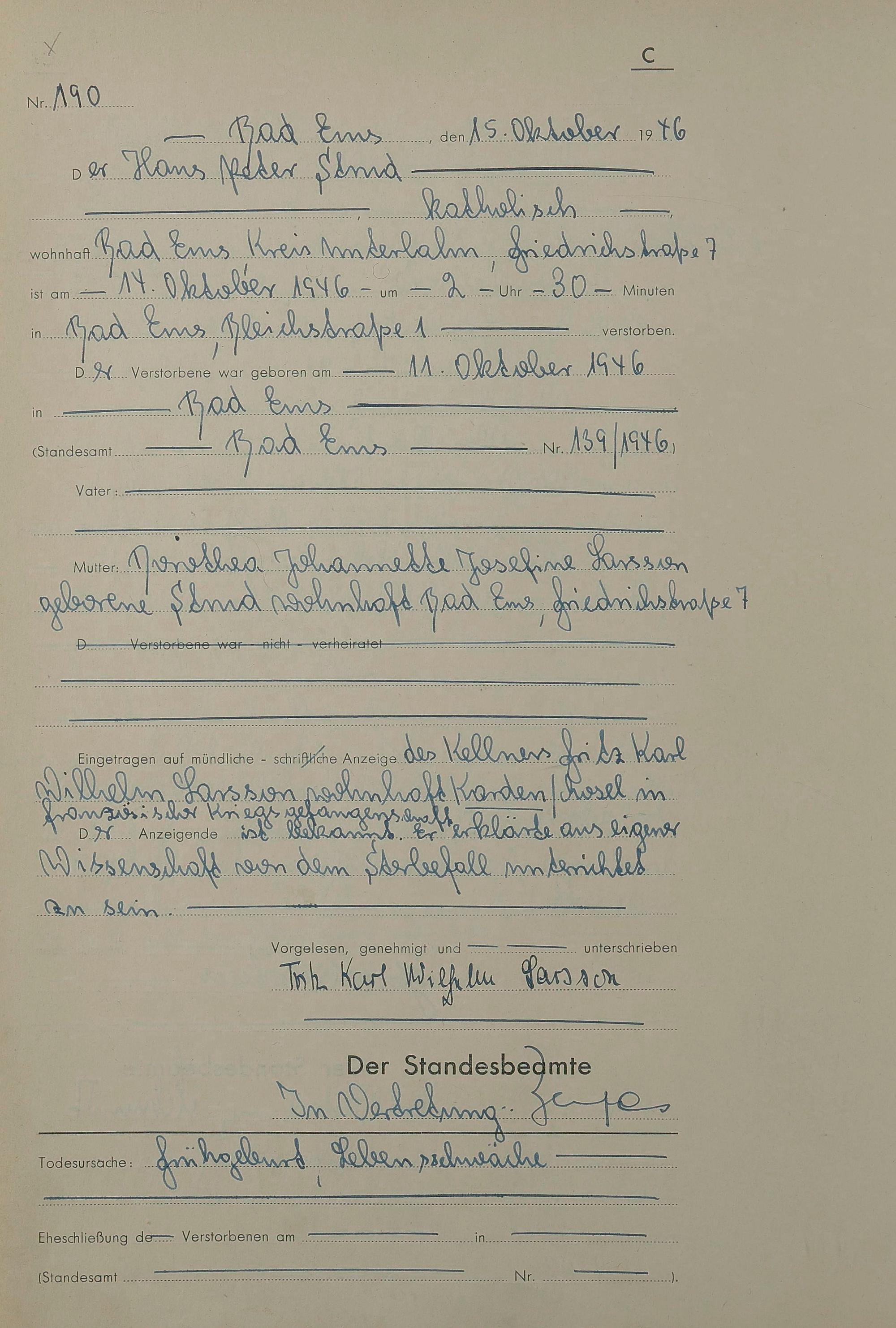1522: Sterberegister 1946