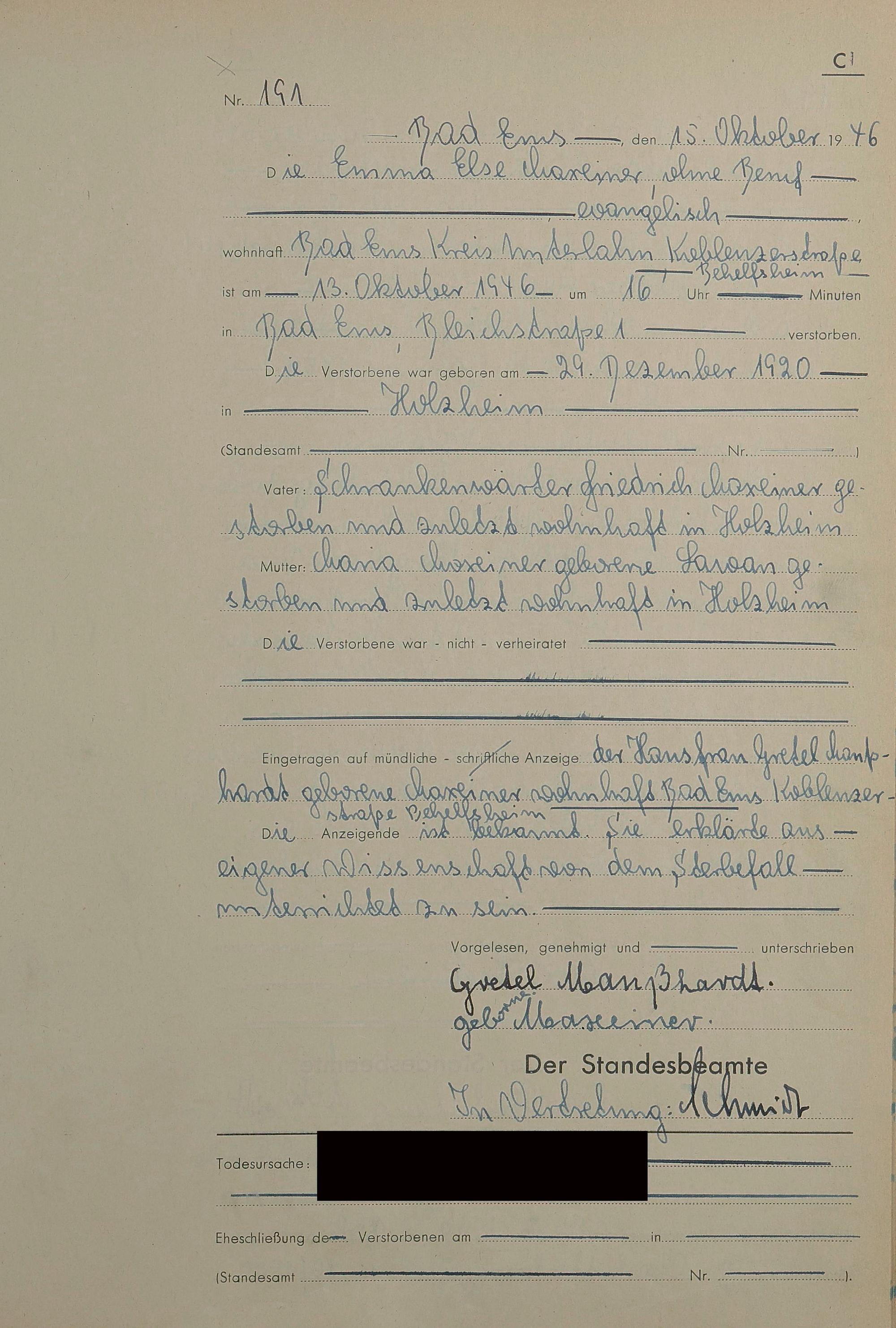 1522: Sterberegister 1946
