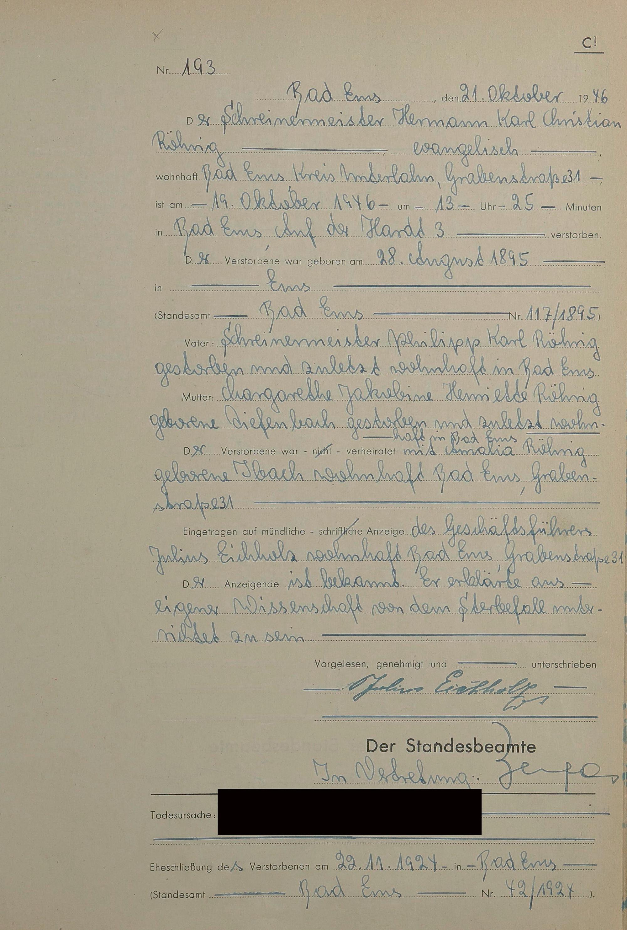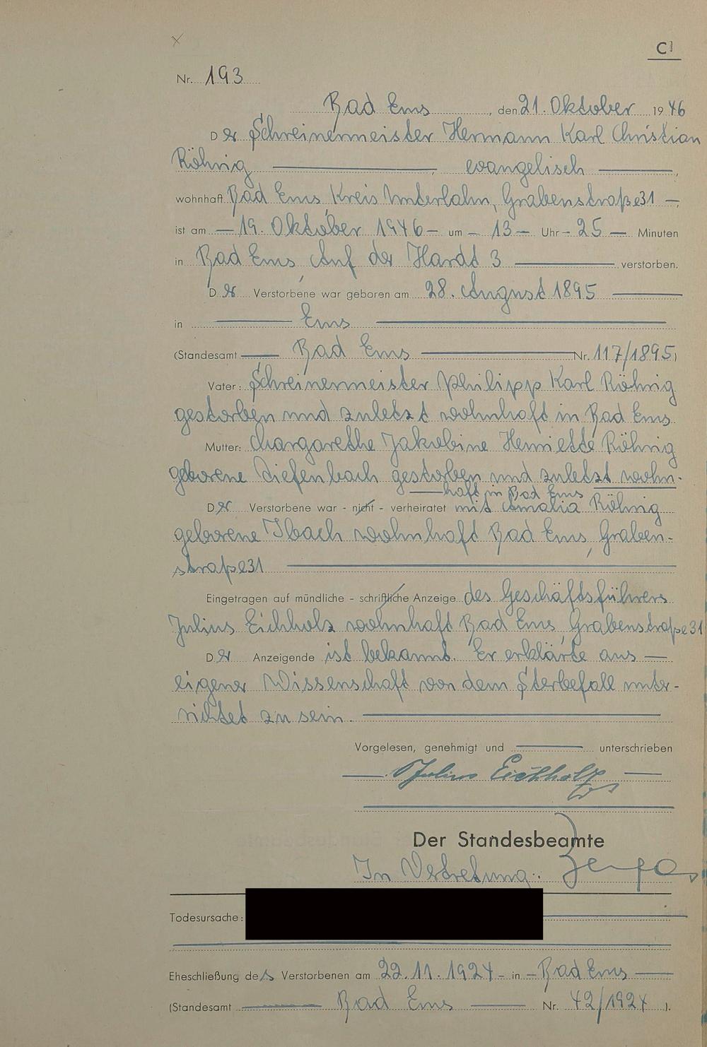 1522: Sterberegister 1946