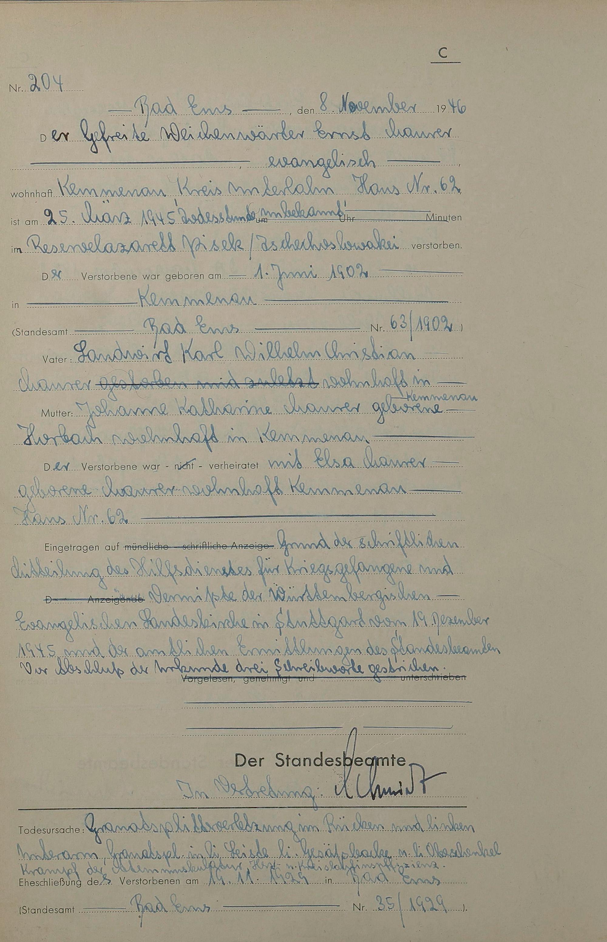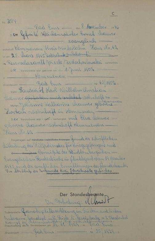 1522: Sterberegister 1946