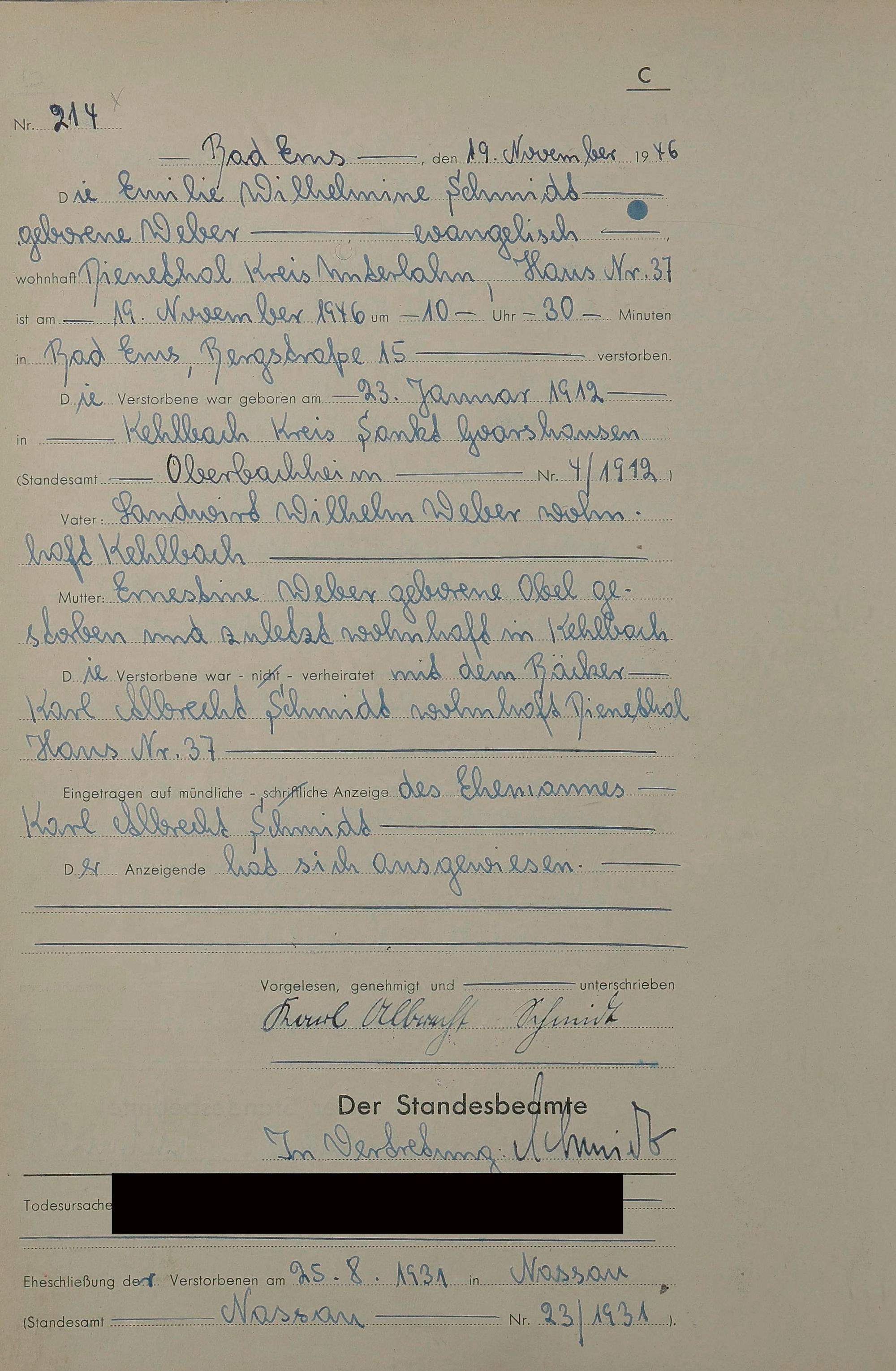 1522: Sterberegister 1946