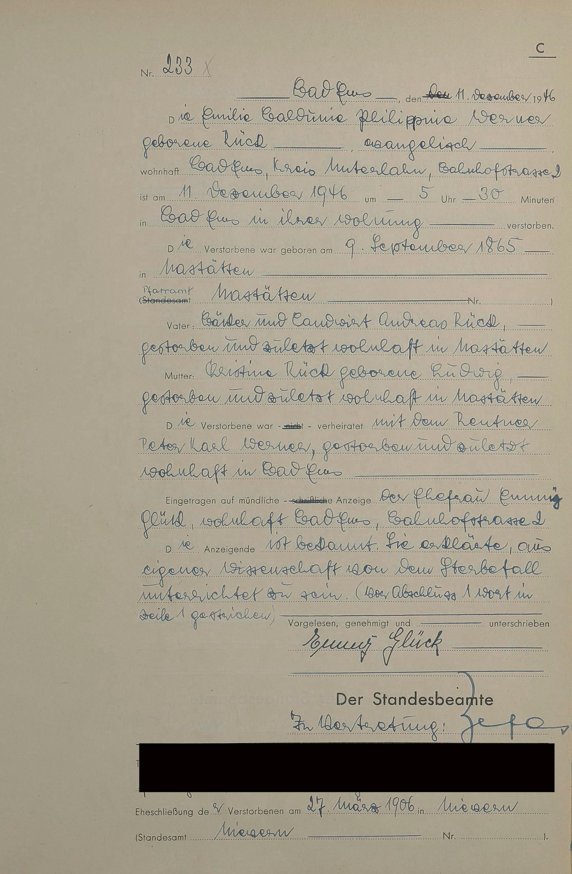 1522: Sterberegister 1946