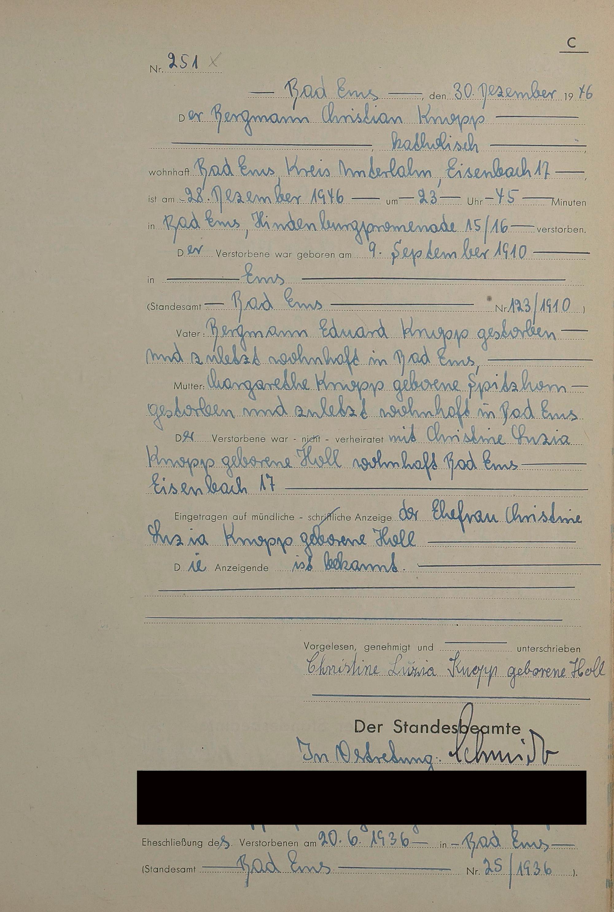 1522: Sterberegister 1946