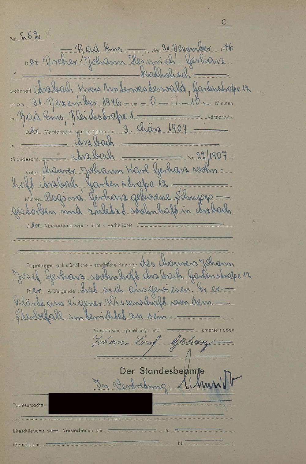 1522: Sterberegister 1946