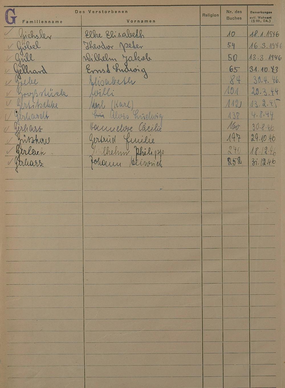 Sterberegister 1946