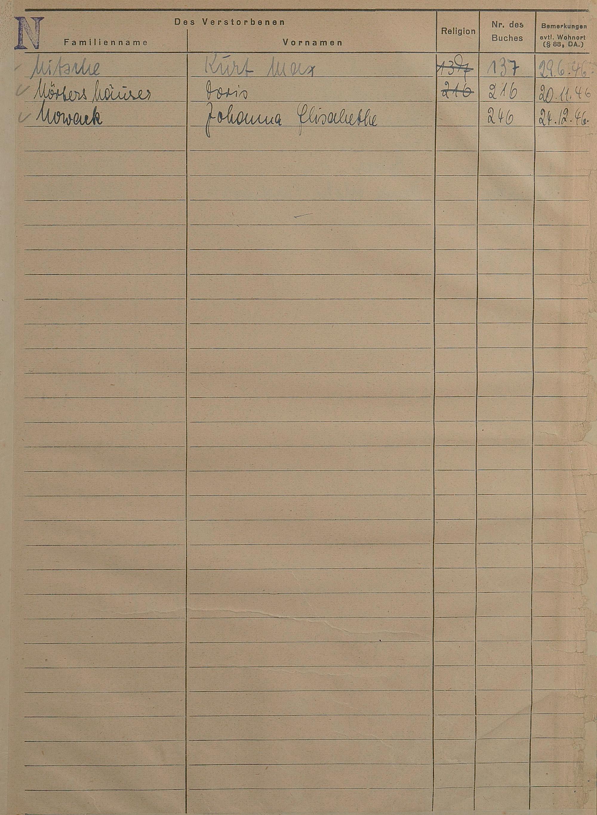Sterberegister 1946