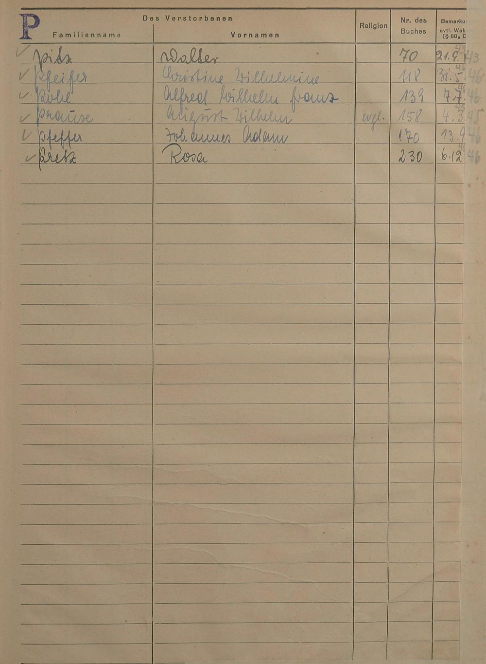 Sterberegister 1946
